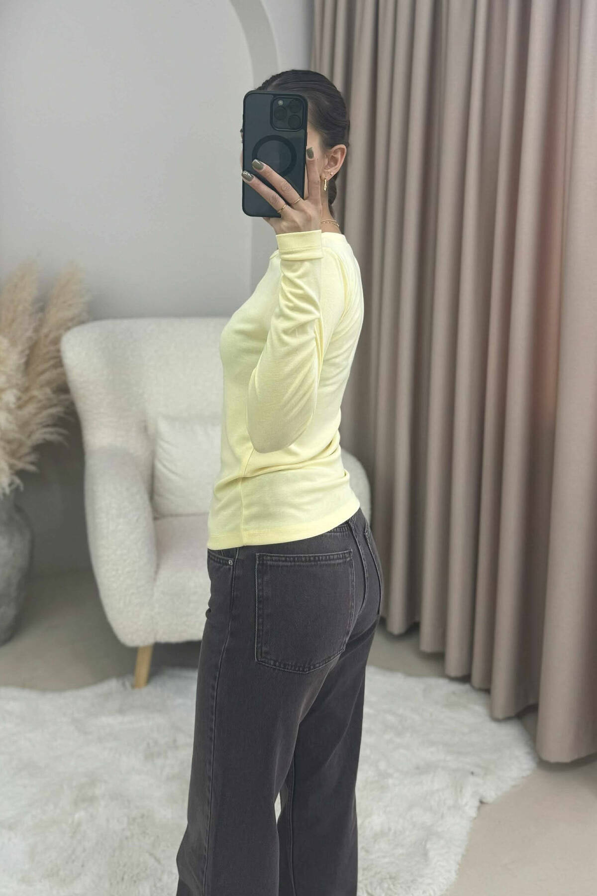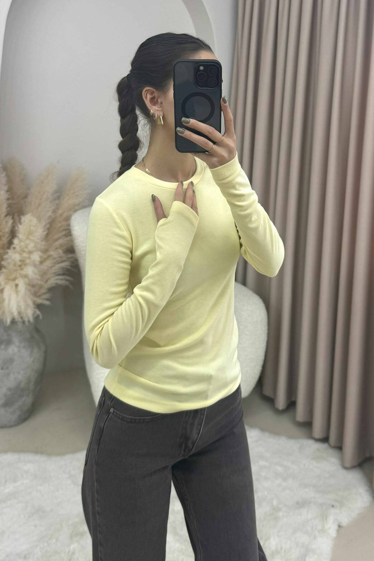 BLUZË E THJESHTË NJË NGJYRËSHE ME JAKË TË RRUMBULLAKËT PËR FEMRA NË NGJYRË TË VERDHË