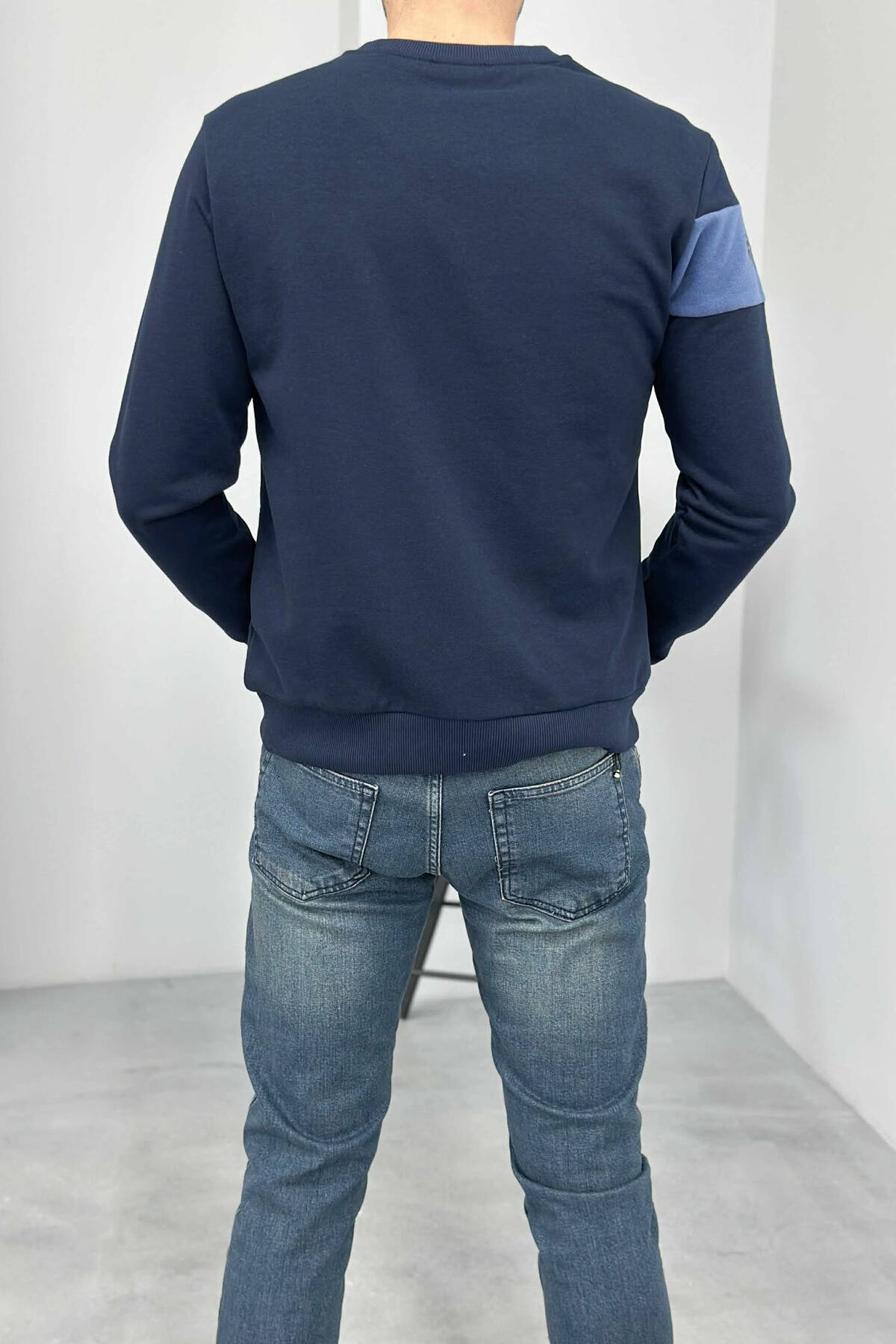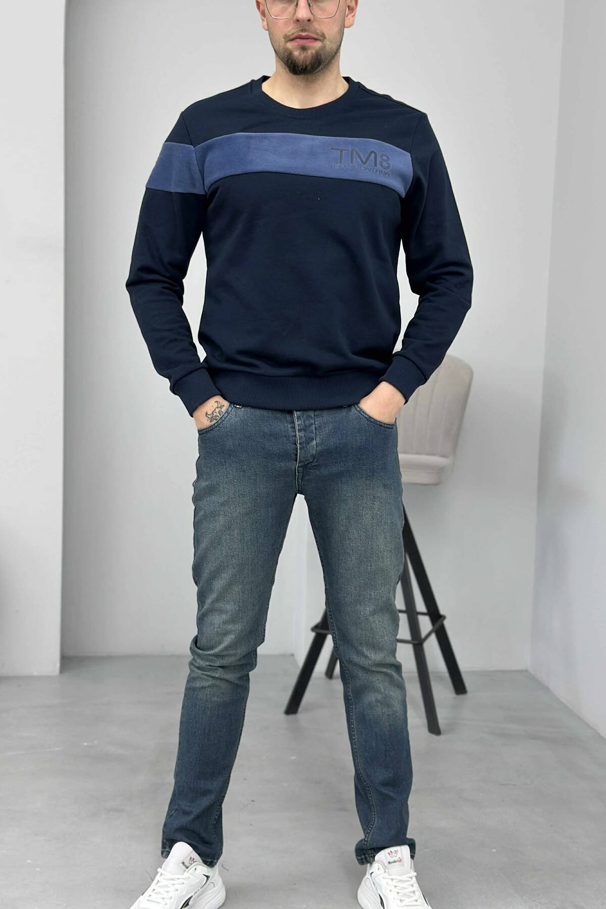 BLUZË ME JAKË RRUMBULLAKE DHE ME DIZAJN NE PJESËN PARA PËR MESHKUJ NË NGJYRËN BLU TË ERRËT