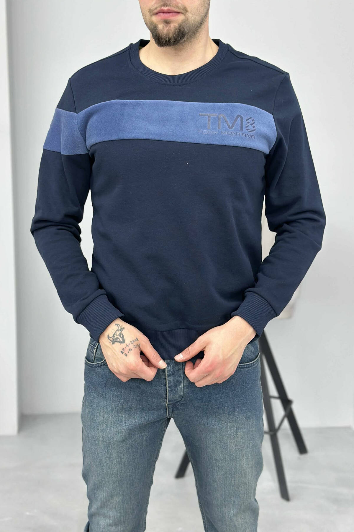 BLUZË ME DIZAJN TË THJESHTË DHE SHKRIME TË VOGLA PËR MESHKUJ NË NGJYRËN BLU TË ERRËT