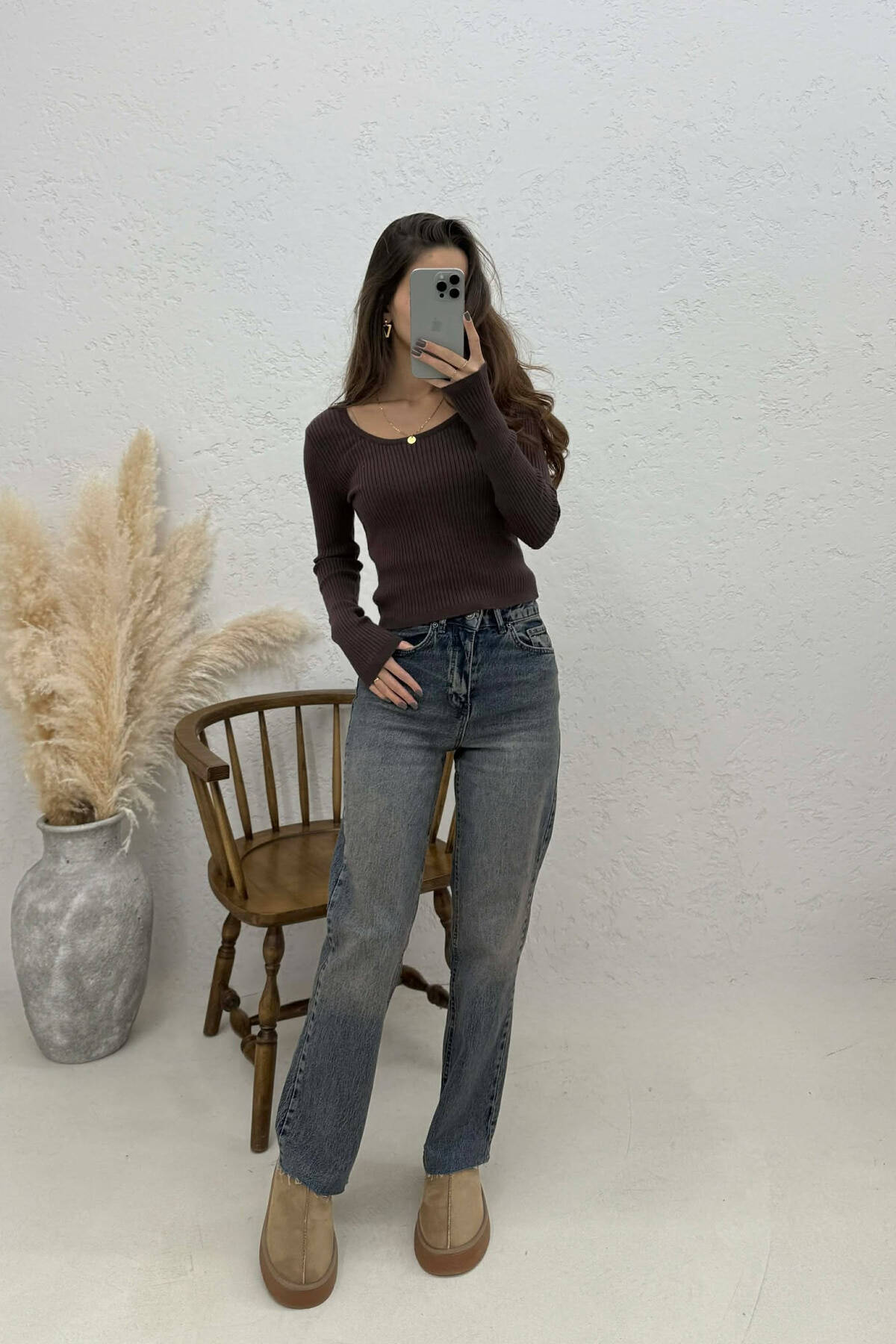 BLUZË E THJESHTË NJË NGJYRËSHE PËR FEMRA NË NGJYRËN KAFE