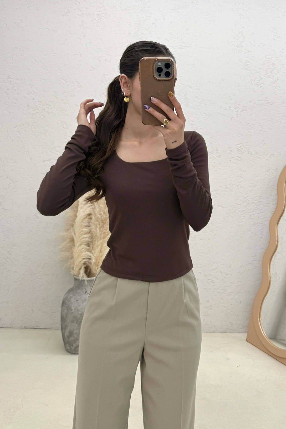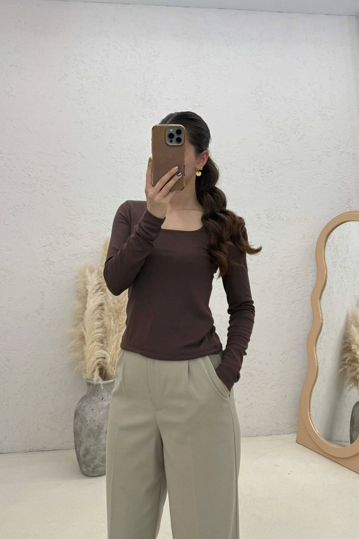 BLUZE E THJESHTE NJE NGJYRESHE PER FEMRA NE NGJYRE KAFE TE ZBARDHUR