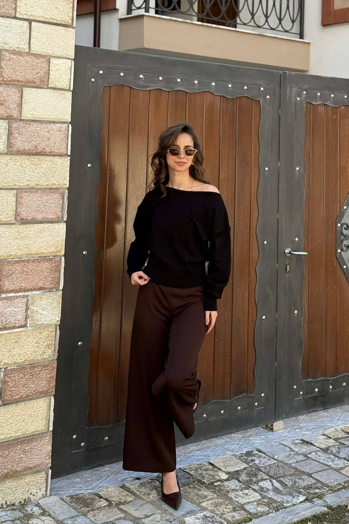 ONE COLOR LACE DETAIL WOMAN SWEATER BROWN/KAFE