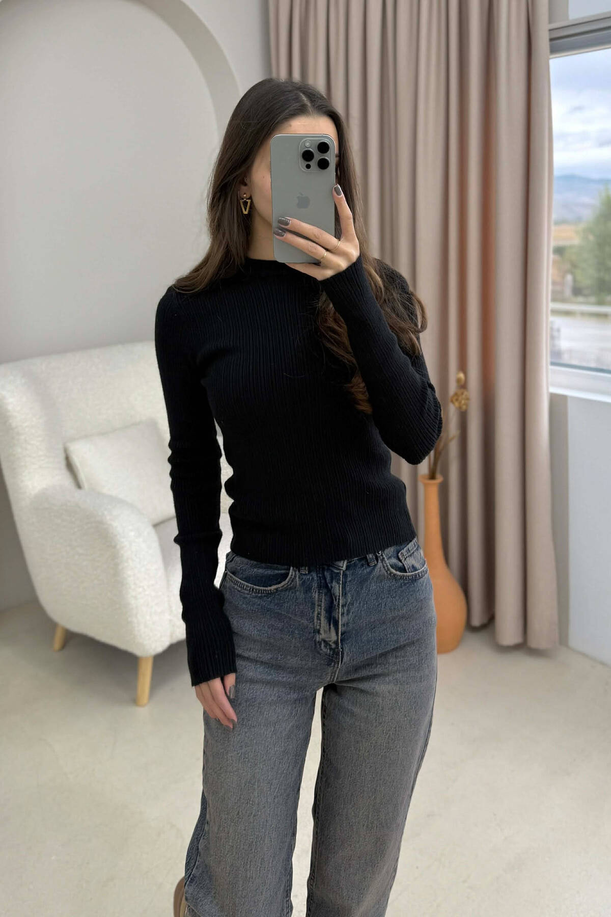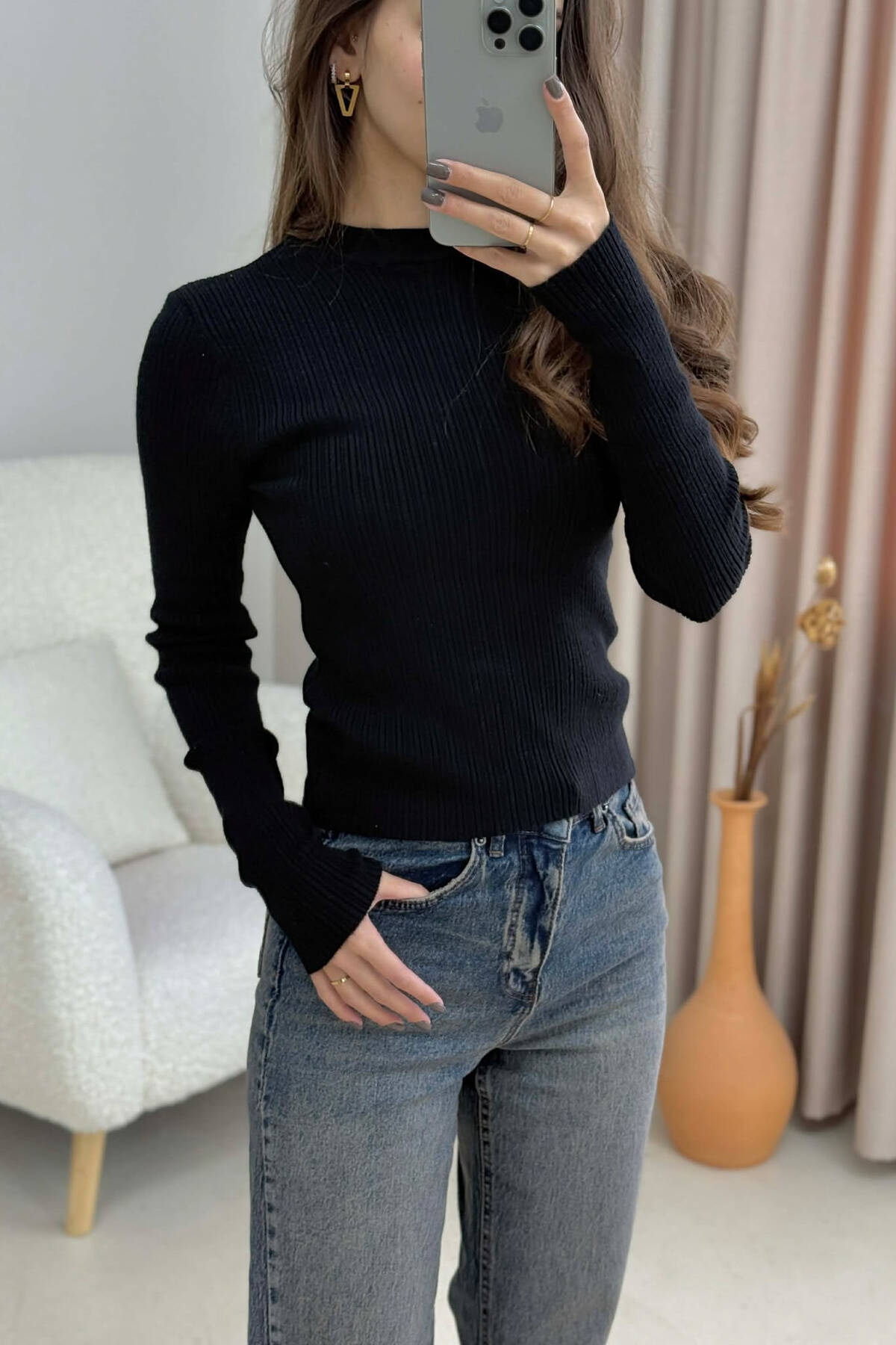 ROUND NECK SIMPLE WOMEN SWEATSHIRT BLACK/ E ZEZE