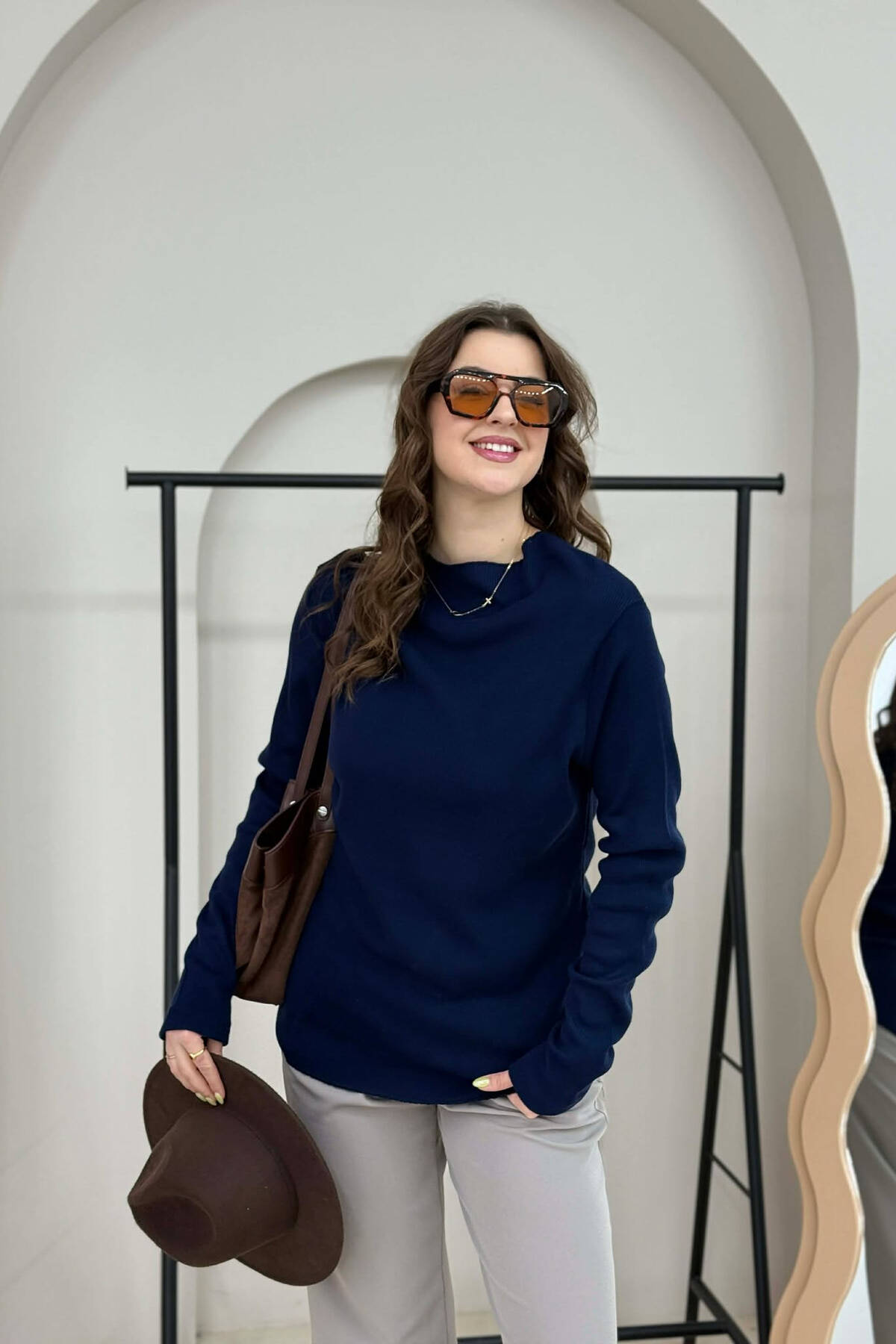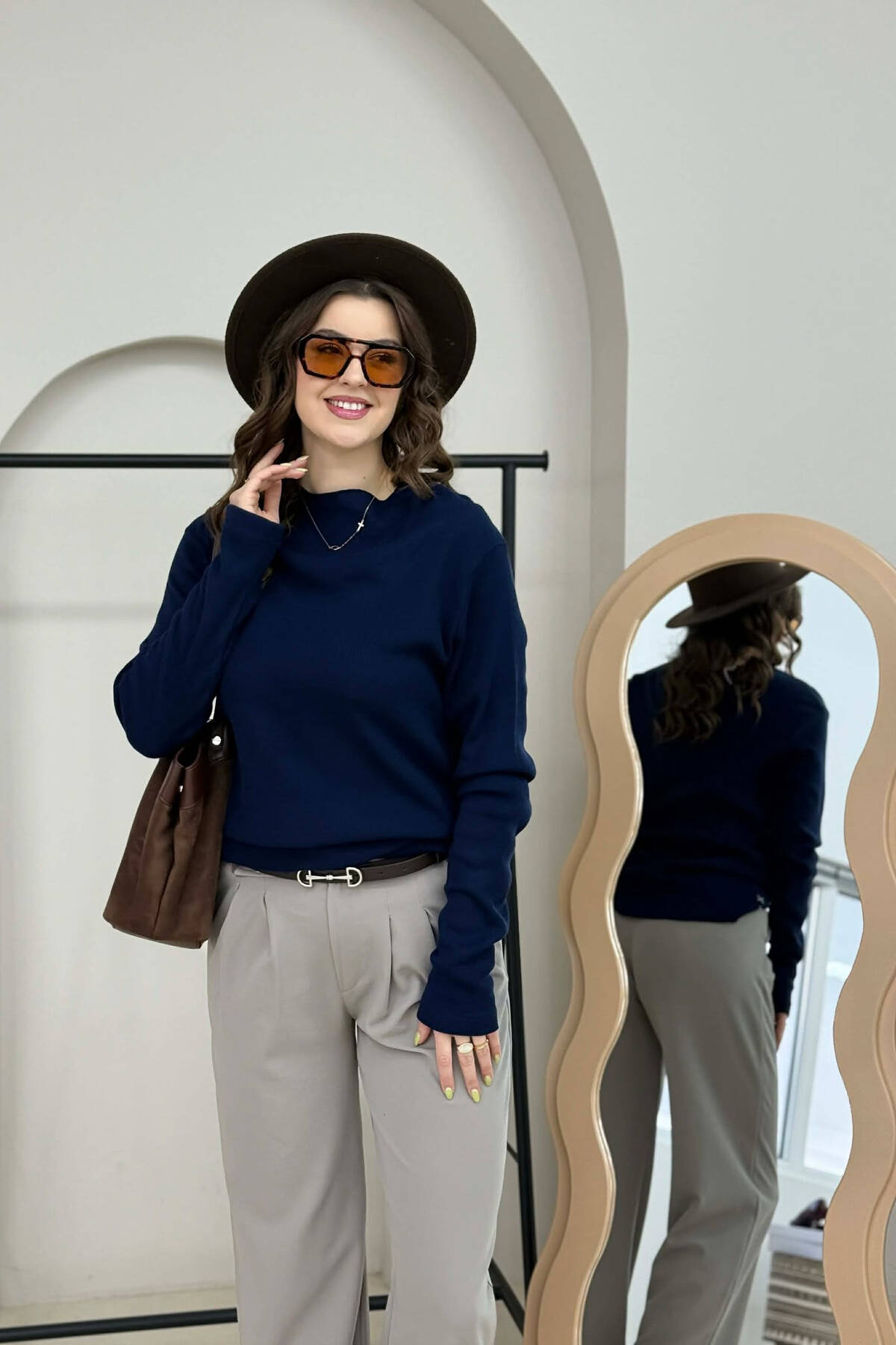 BLUZË E THJESHTË NJËNGJYRESHE PËR FEMRA NË NGJYRËN BLU TË ERRËT
