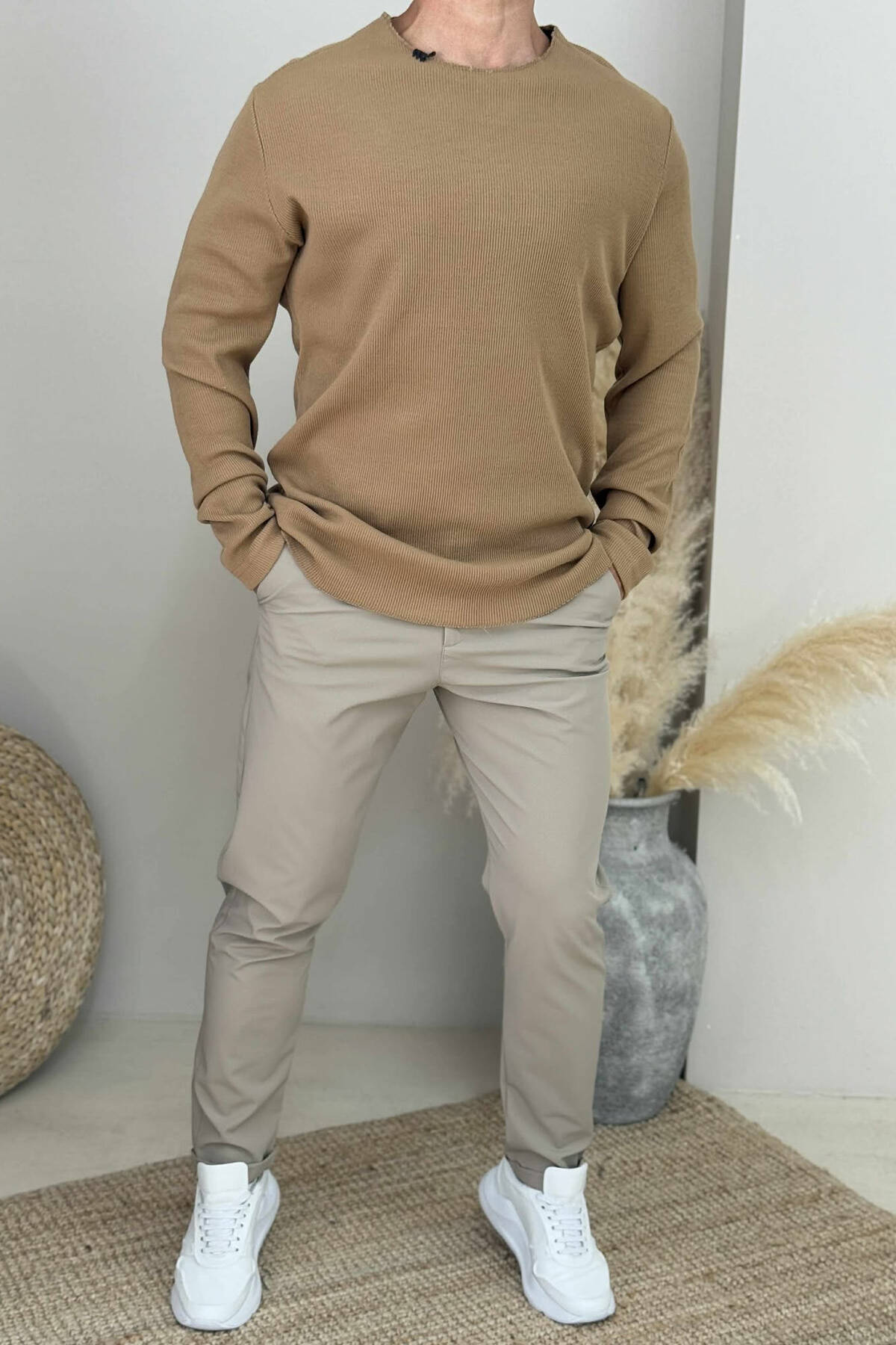 ONE COLOR ROUND NECK MEN SWEATER BROWN/KAFE