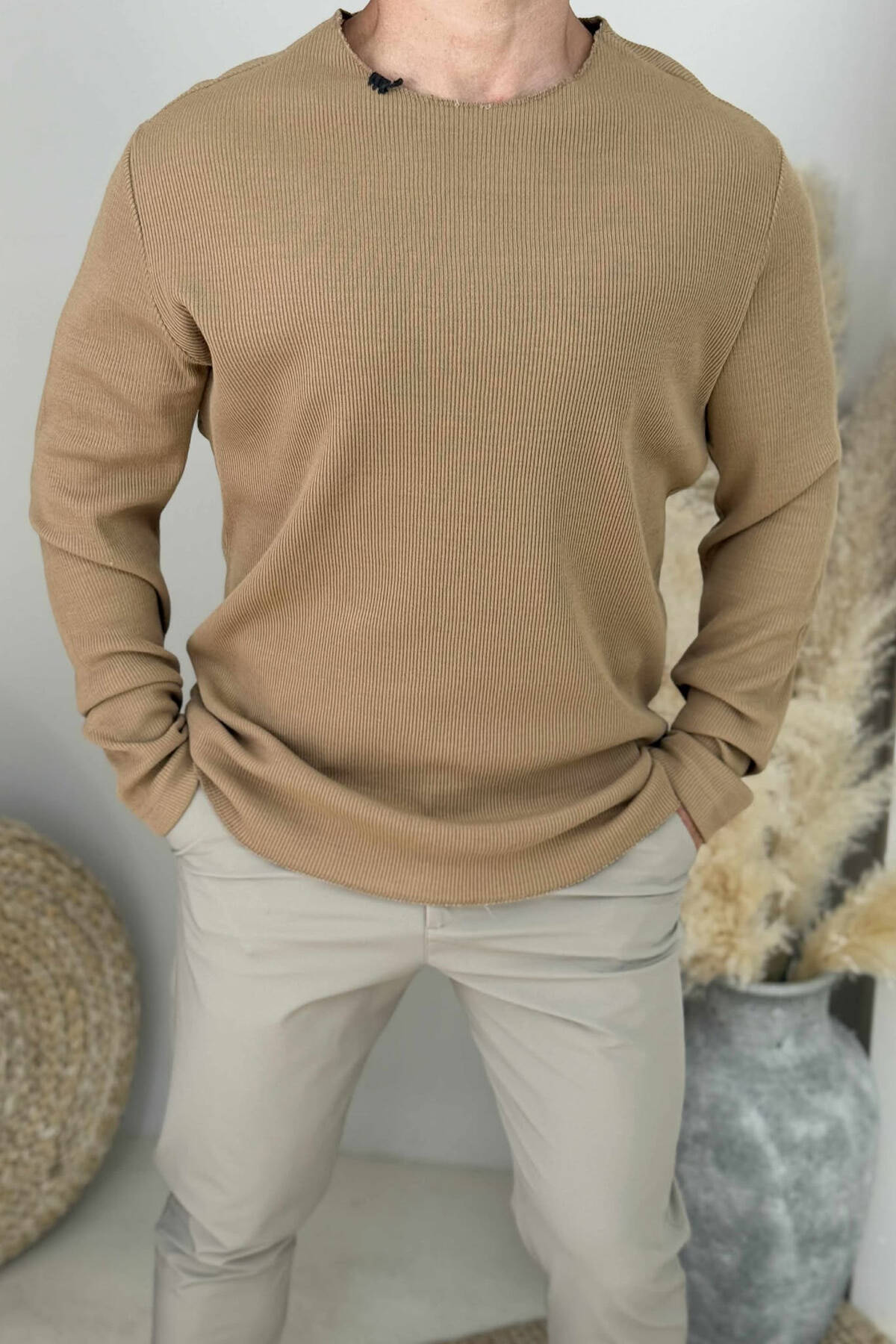 BLUZË E THJESHTË NJËNGJYRESHE PËR MESHKUJ NË NGJYRËN KAFE