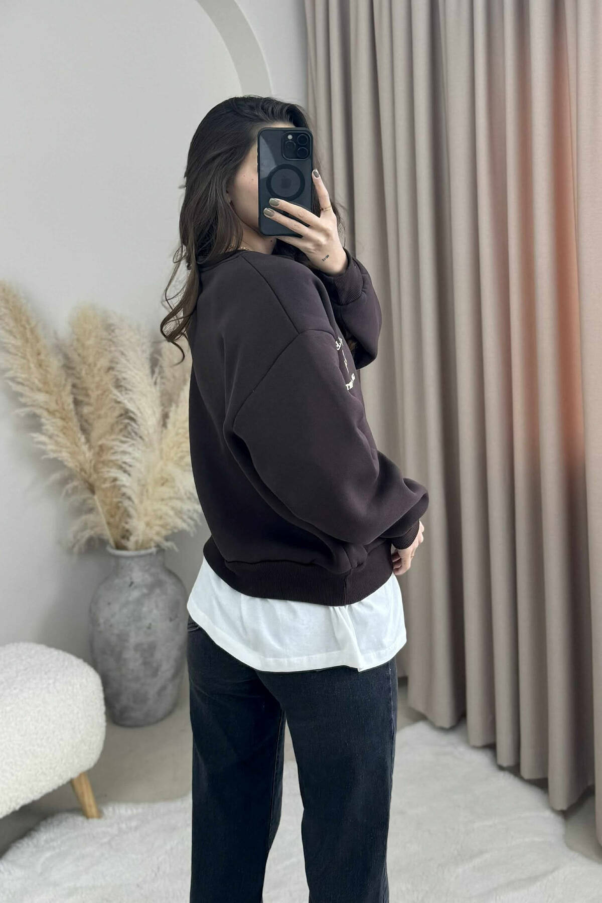 BLUZË LA ME PUSH DHE JAKË TË RRUMBULLAKËT PËR FEMRA NË NGJYRË KAFE TË ERRËT