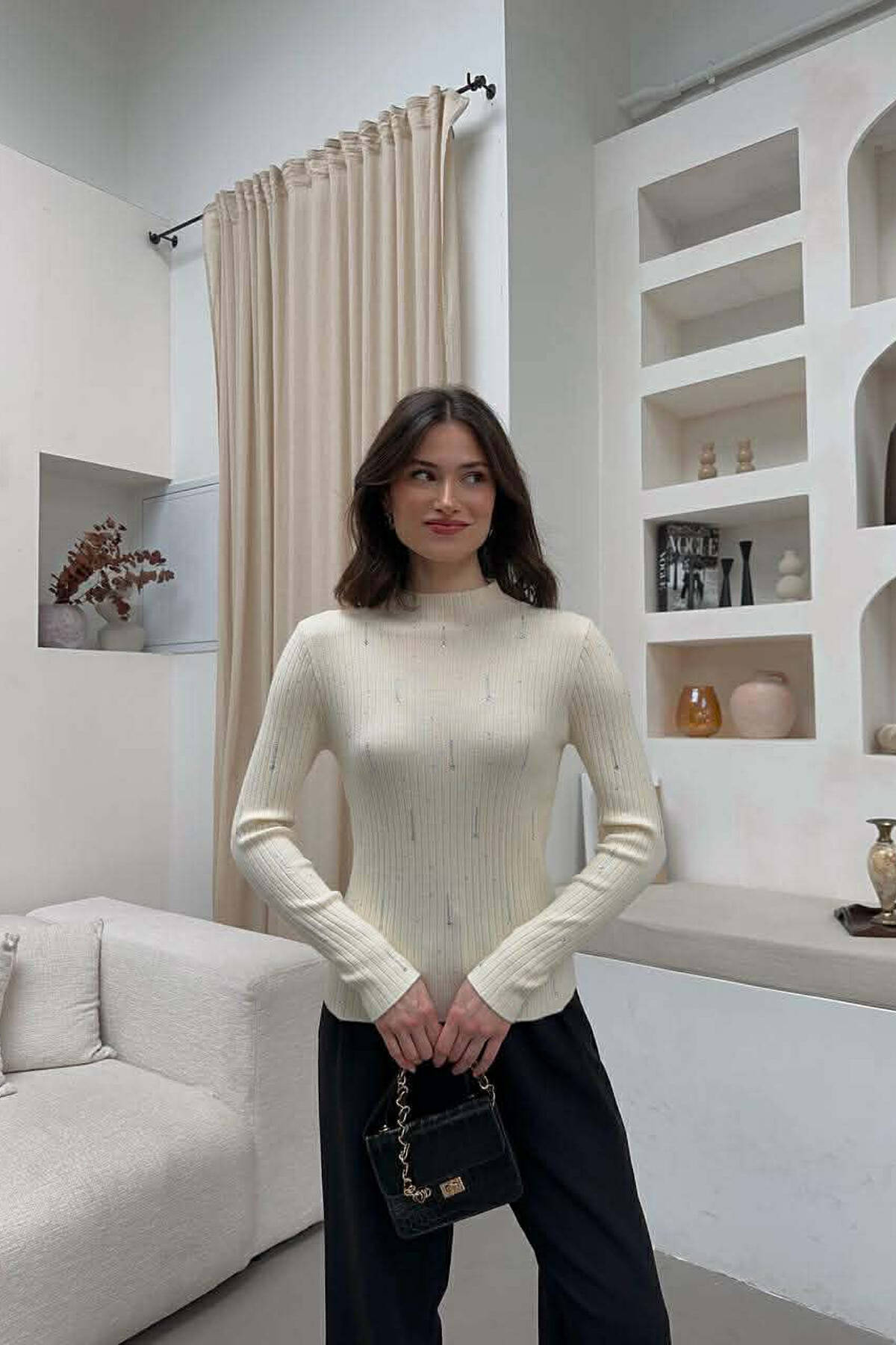 BLUZE ME DETAJE GURESH PER FEMRA NE NGJYRE KREM