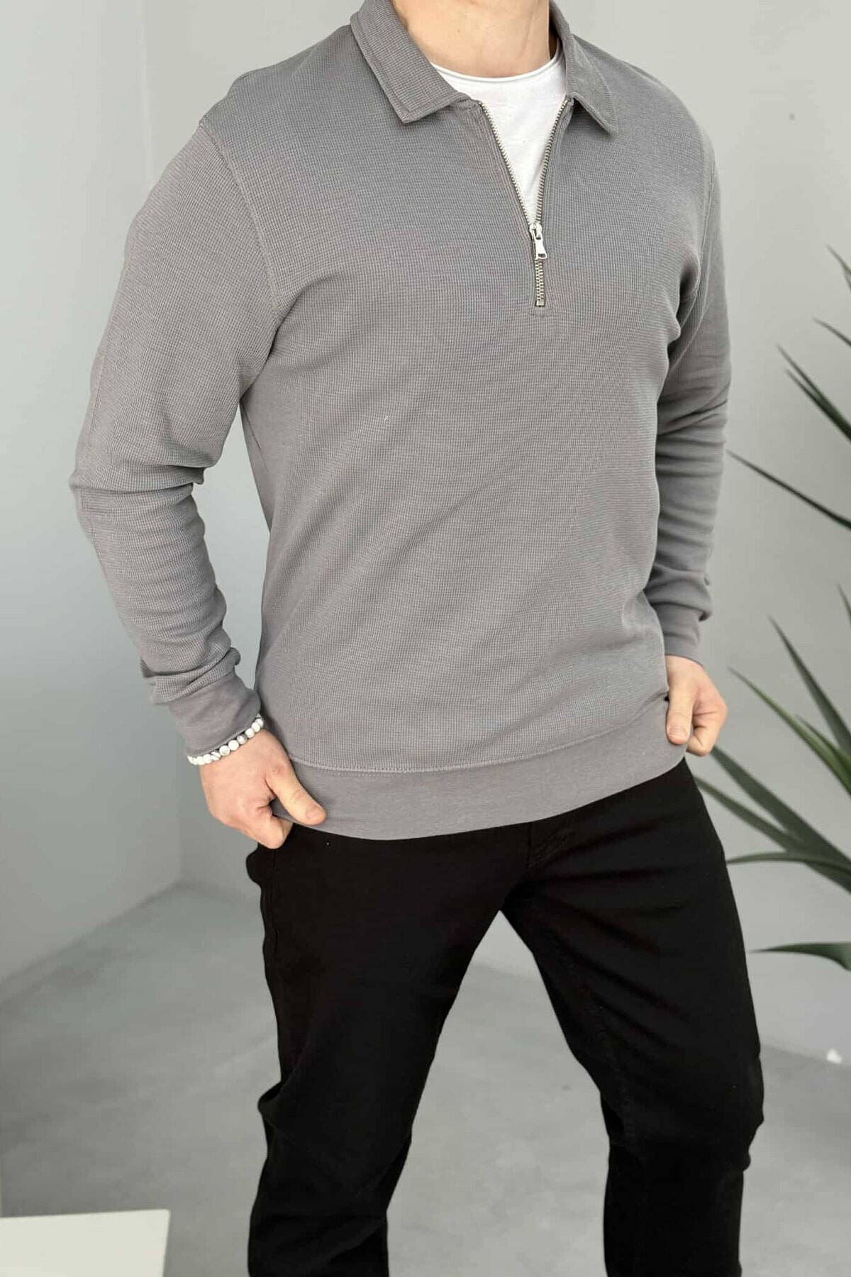 BLUZË ME JAKË POLO ME ZINXHIR PËR MESHKUJ NË NGJYRËN GRI