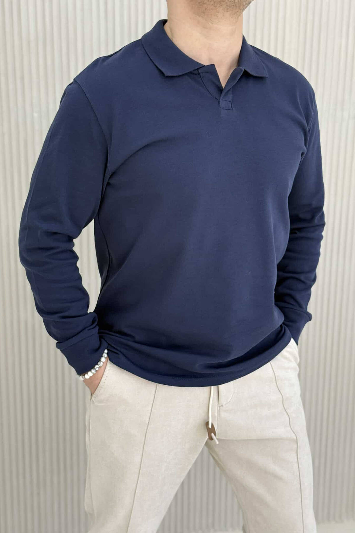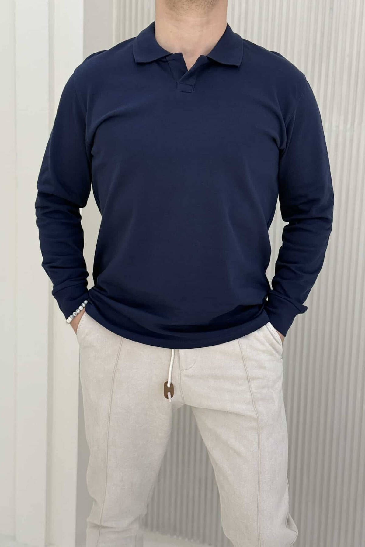 BLUZË ME JAKË POLO PËR MESHKUJ NË NGJYRËN BLU