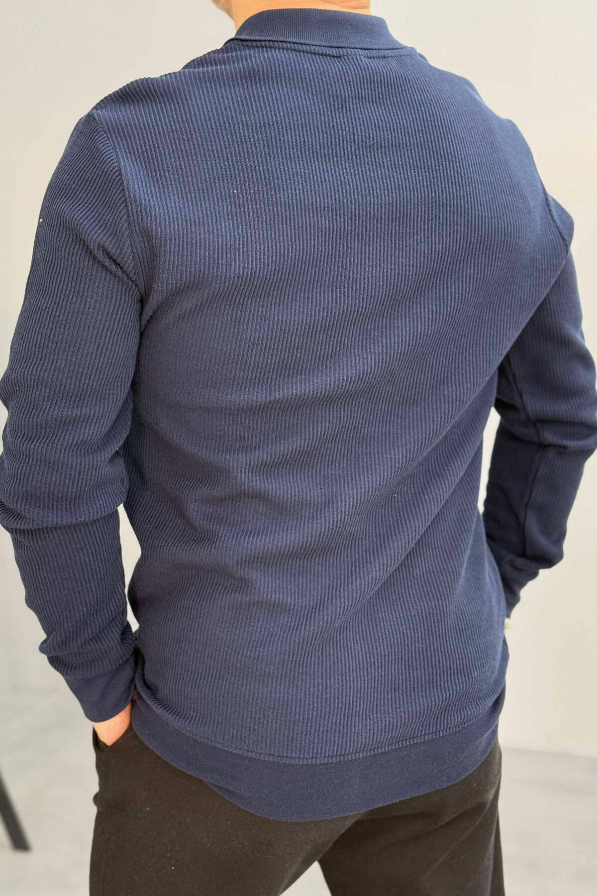 BLUZË ME JAKE ME ZINXHIR DHE ME DIZAJN VIJASH PËR MESHKUJ NË NGJYRË BLU