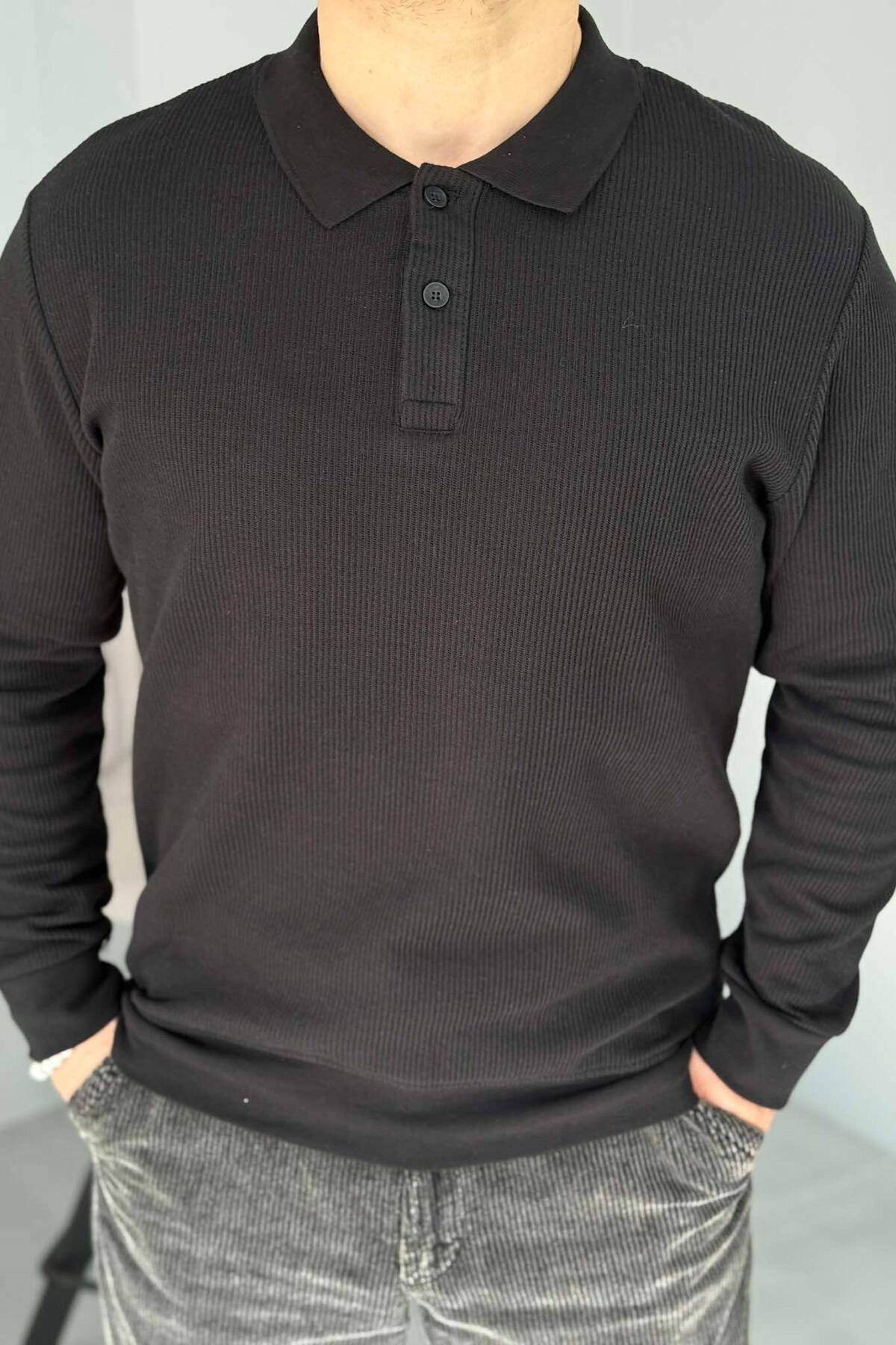BLUZË ME JAKË POLO PËR MESHKUJ NË NGJYRËN E ZEZË