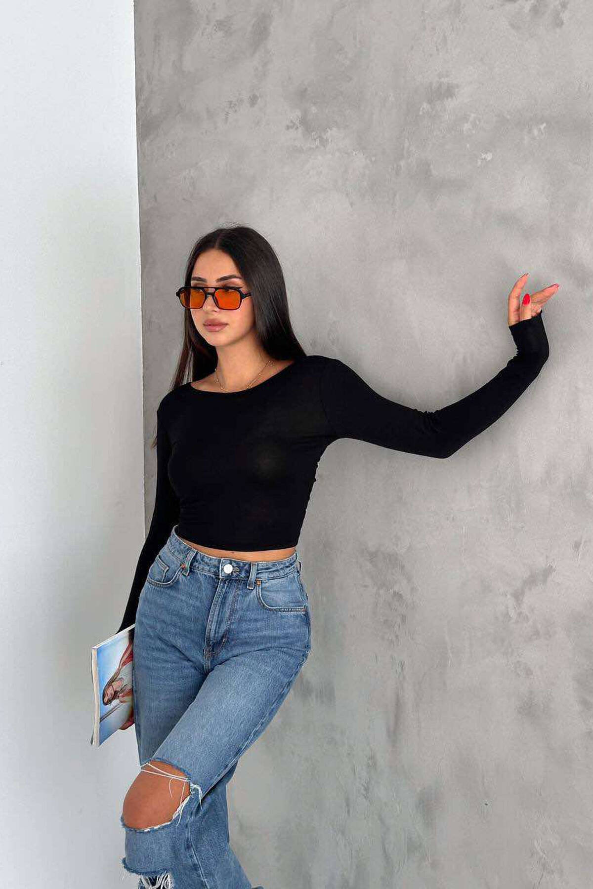 Bluzë Me Lidhëse Në Pjesën E Pasme Për Femra Në Ngjyrën E Zezë