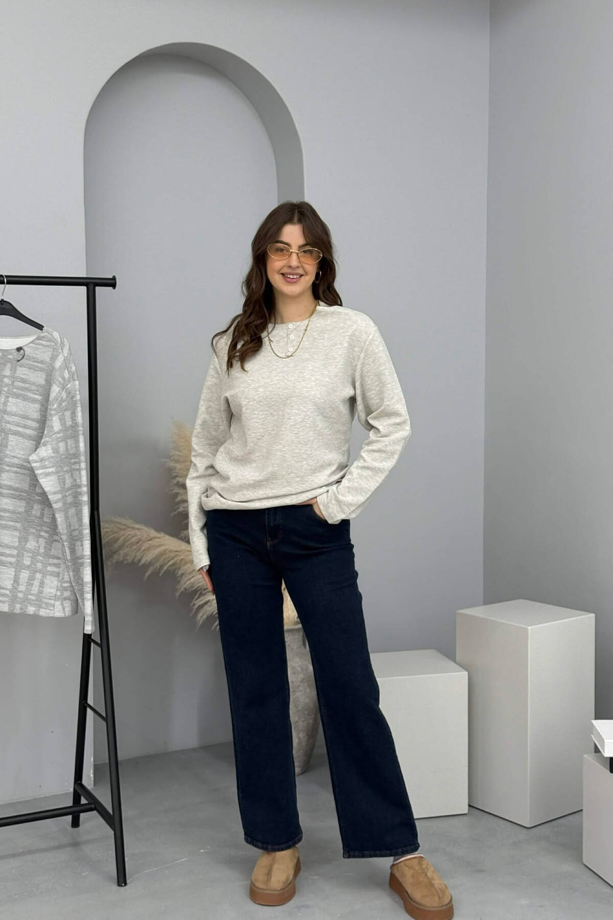 BLUZË ME MËNGË TË GJATA DHE KOPSA PËR FEMRA NË NGJYRË BEZHË