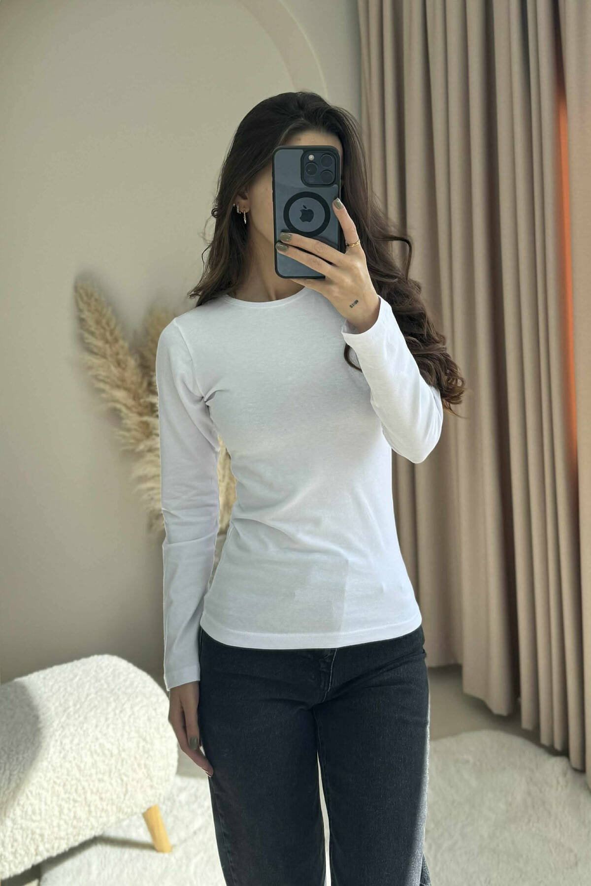 Më njoftoni kur të rikthehet"Bluzë me mëngë të gjata me qafë të rrumbullakëta ne ngjyre te bardhe . Përqafoni elegancën klasike në bluzën tonë të gjithanshme. E krijuar me kujdes, ajo ndërthur në mënyrë të përsosur komoditetin dhe stilin.