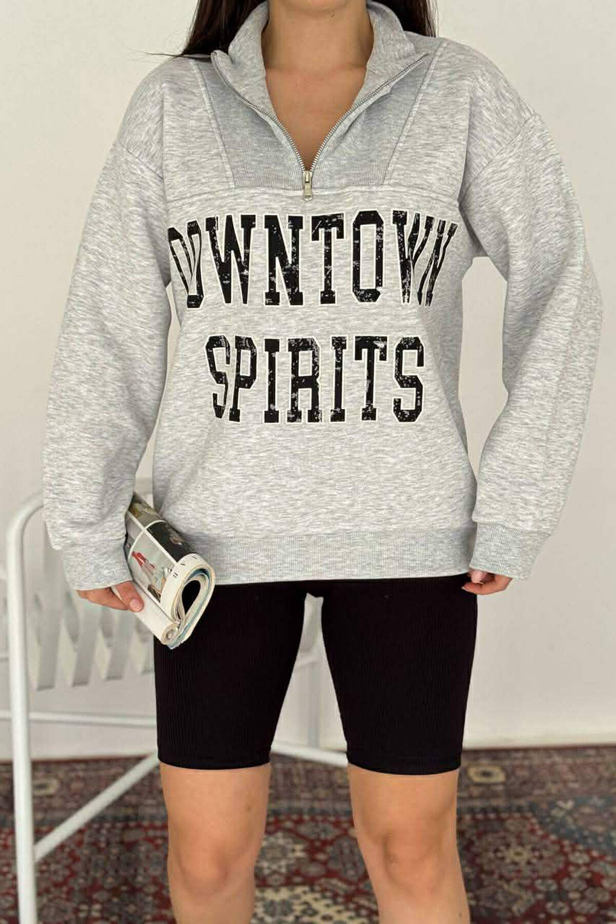 BLUZE ME PUSH DHE JAKE ME ZINXHIR DHE SHKRIME PER FEMRA NE NGJYRE GRI TE ZBARDHUR