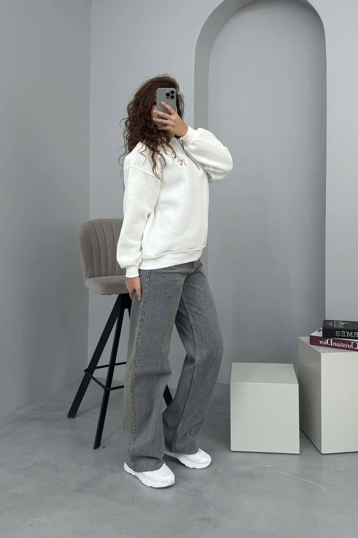ROUND NECK SIMPLE WOMEN SWEATSHIRT CREAM/KREM