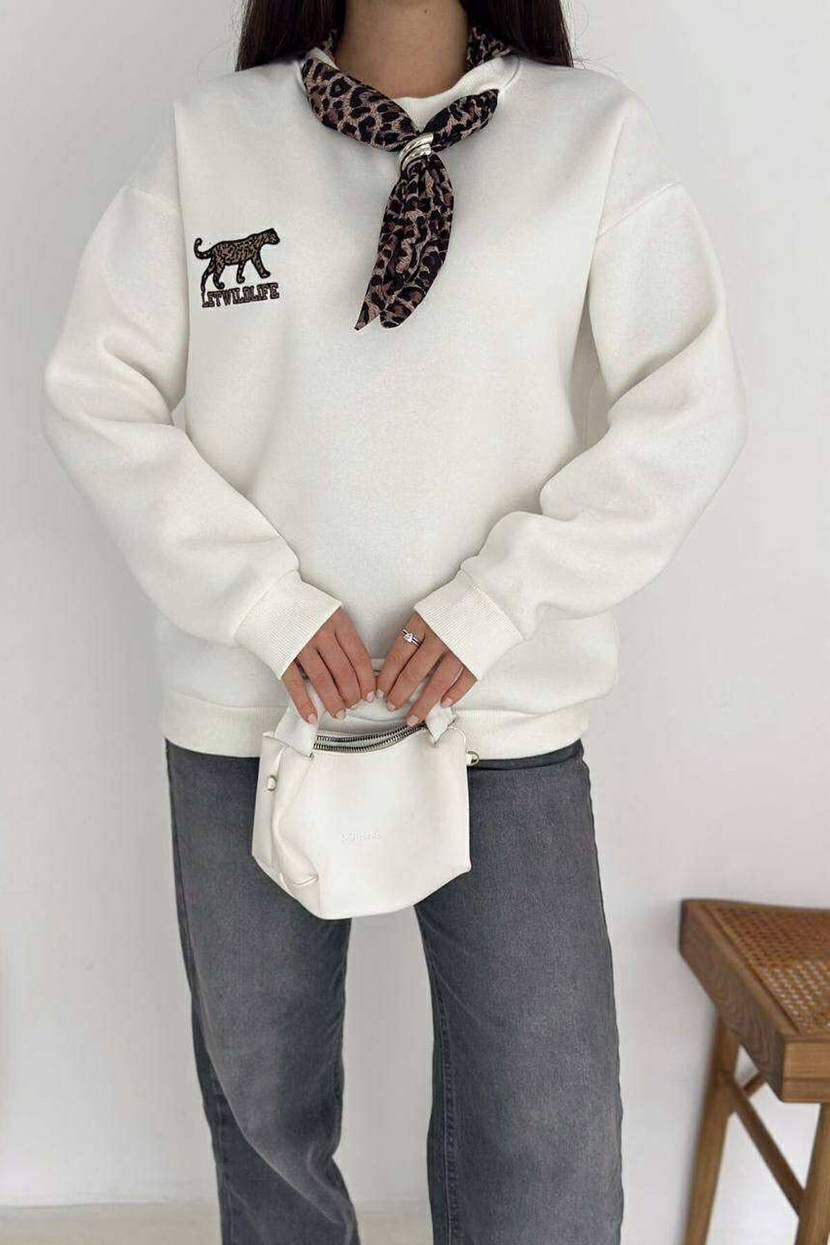 BLUZE ME PUSH DHE ME DETAJIN E SHALLIT DHE PRINT LEOPRADI PER FEMRA NE NGJYRE TE BARDHE