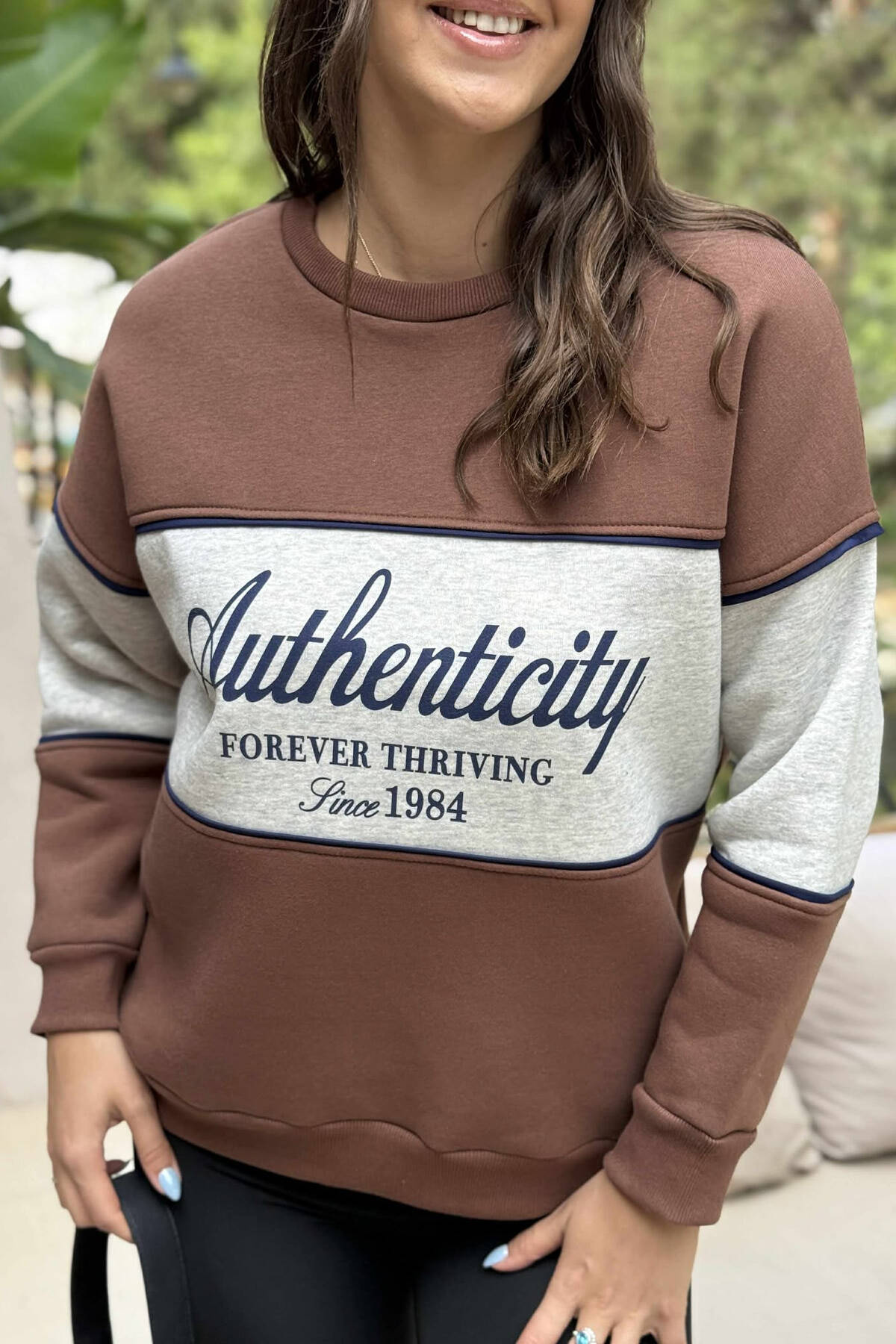 BLUZË ME PUSH DHE SHKRIME PARA PËR FEMRA NË NGJYRËN KAFE
