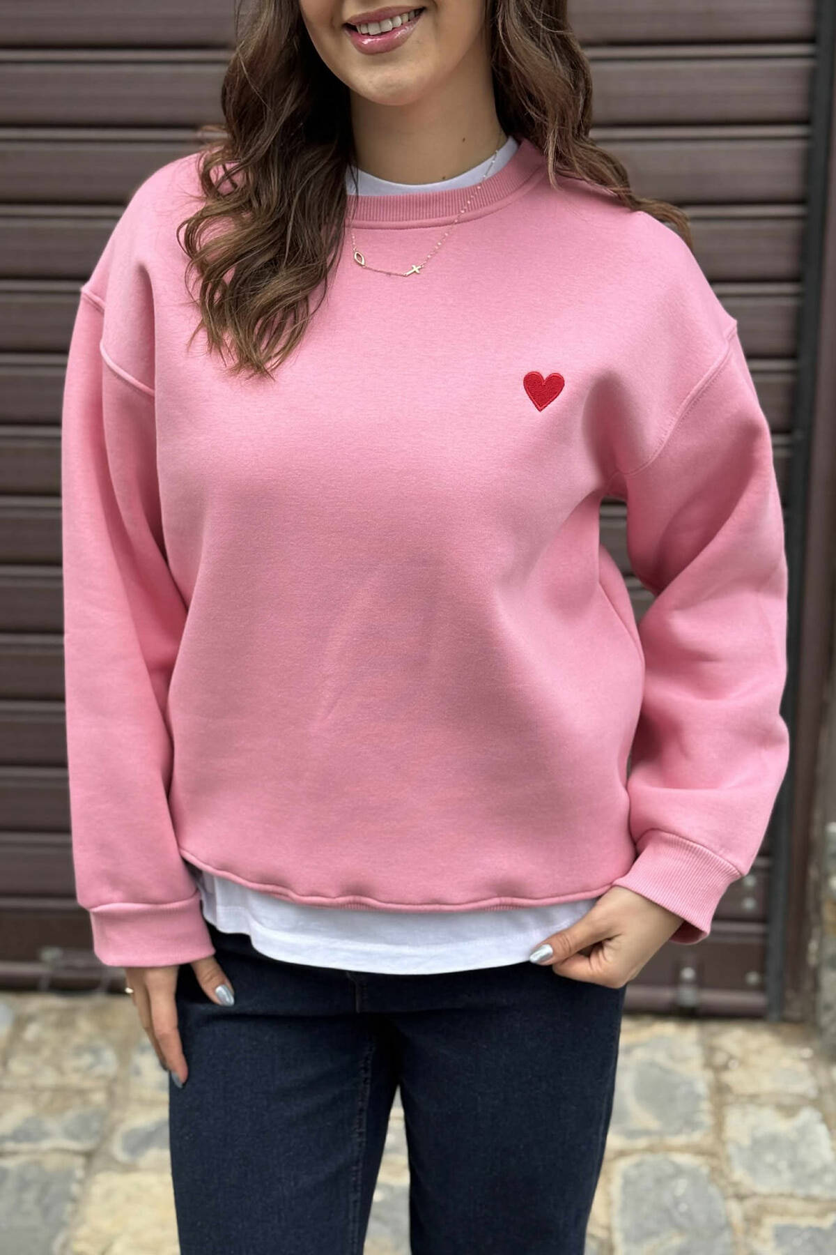BLUZË ME PUSH ME DETAJIN E ZEMRES PËR FEMRA NË NGJYRËN ROZË