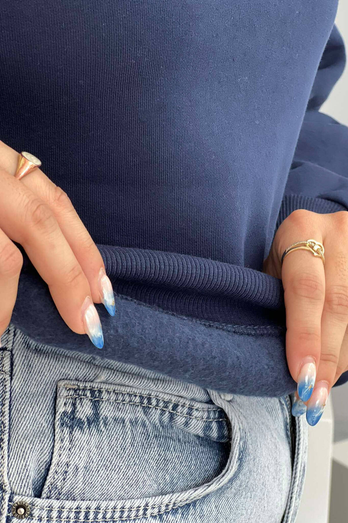 Bluzë Me Push Me Zinxhir Për Femra Në Ngjyrë Blu E Errët