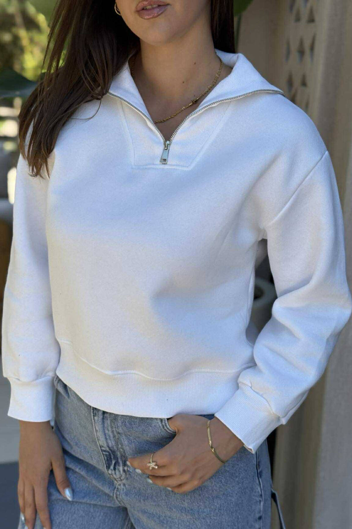 Bluzë Me Push Me Zinxhir Për Femra Në Ngjyrë TË Bardhë