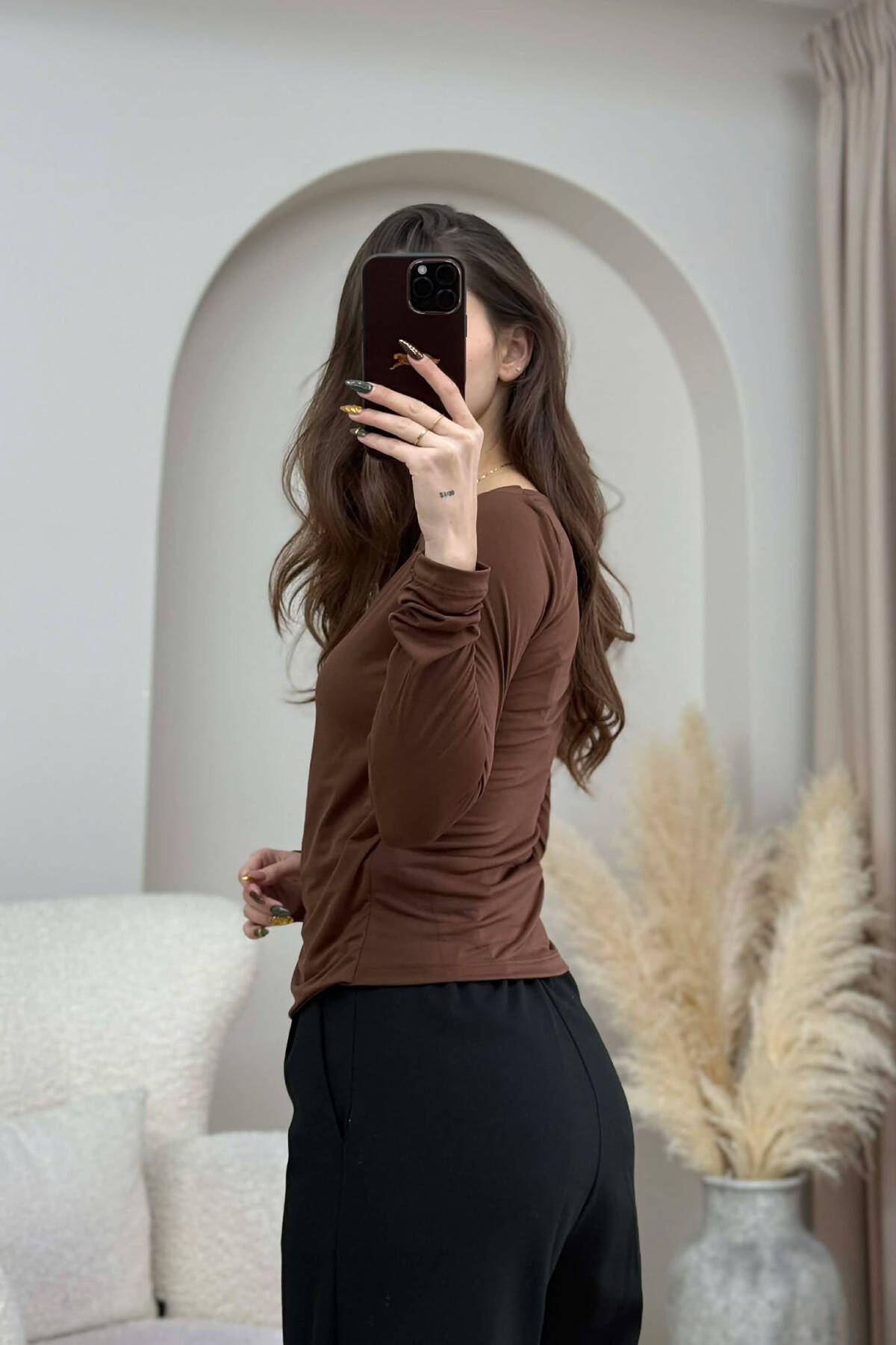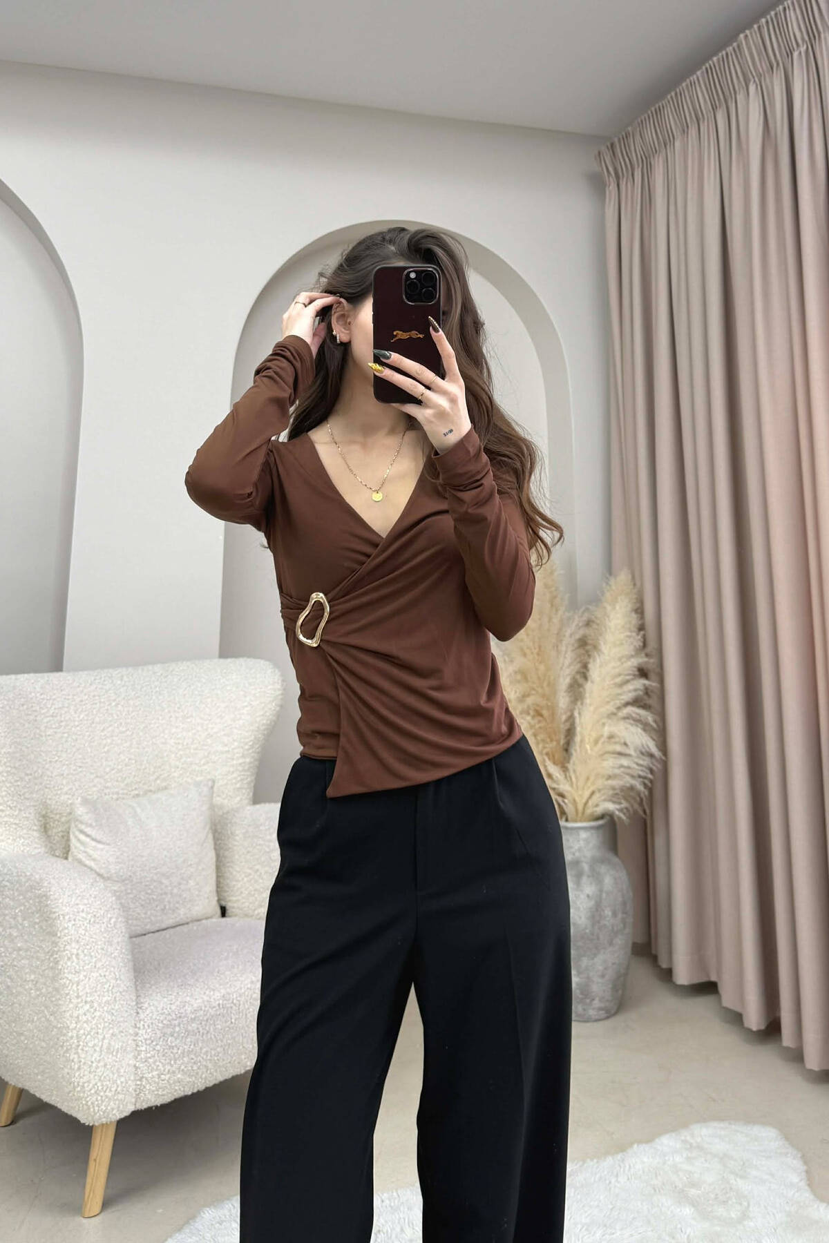 BLUZE NJE NGJYRESHE ME DETAJ FLORIRI PER FEMRA NE NGJYRE KAFE