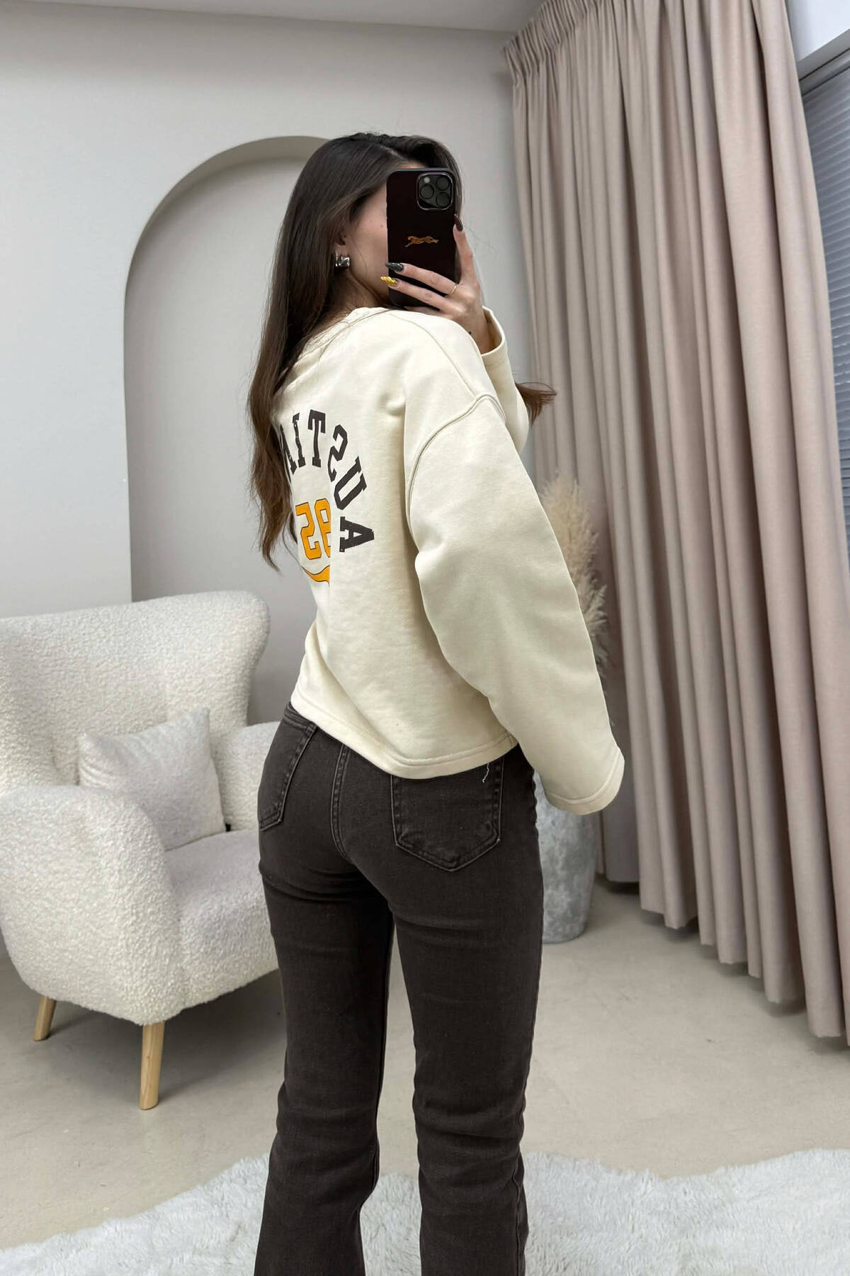 HOODIE ME PUSH DHE ME DIZJAN NE PJESEN PARA & PAS PER FEMRA NE NGJYRE BEZHE