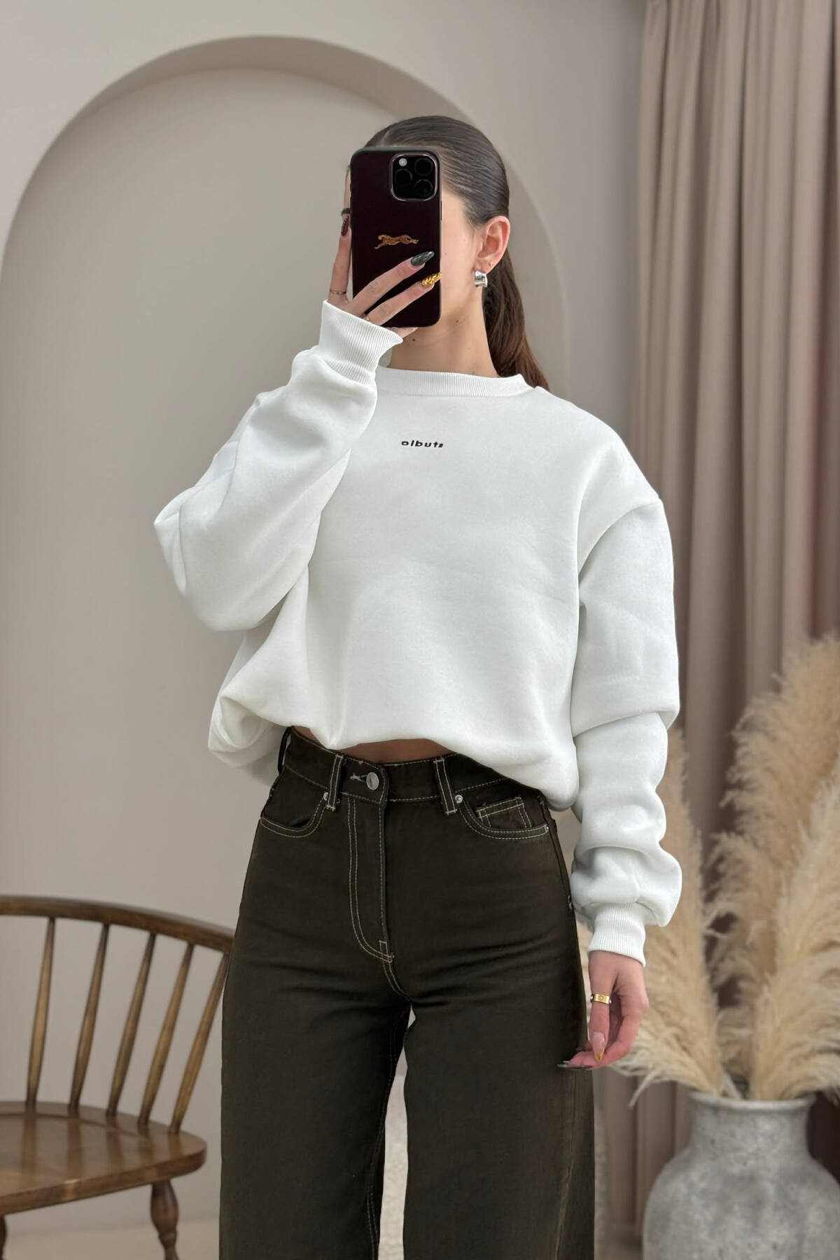BLUZE ME SHKRIM STUDIO DHE BEL ELASTIK PER FEMRA NE NGJYRE TE BARDHE