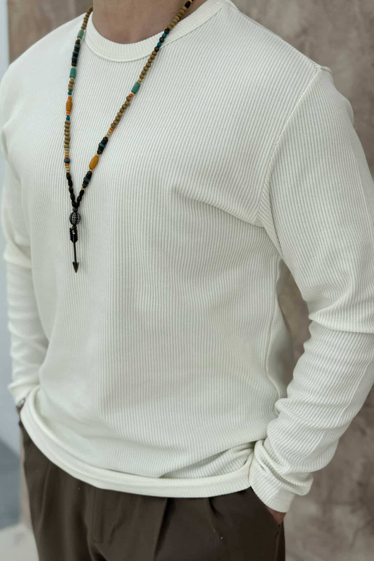 BLUZË ME TEKSTURË PËR MESHKUJ NË NGJYRËN E BARDHË