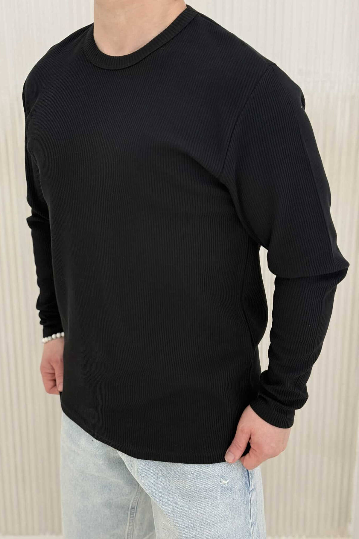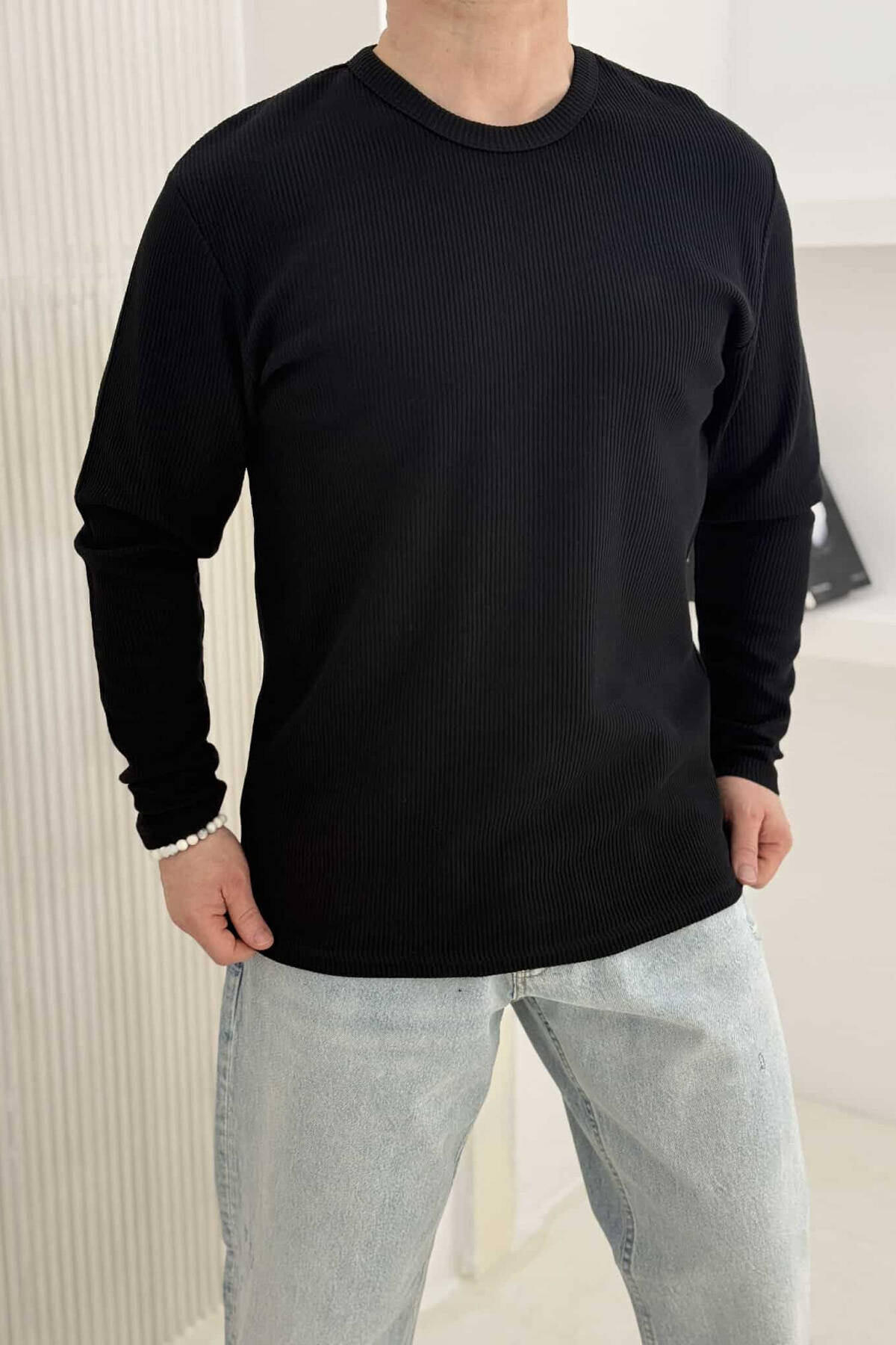 BLUZË ME TEKSTURË PËR MESHKUJ NË NGJYRËN E ZEZË