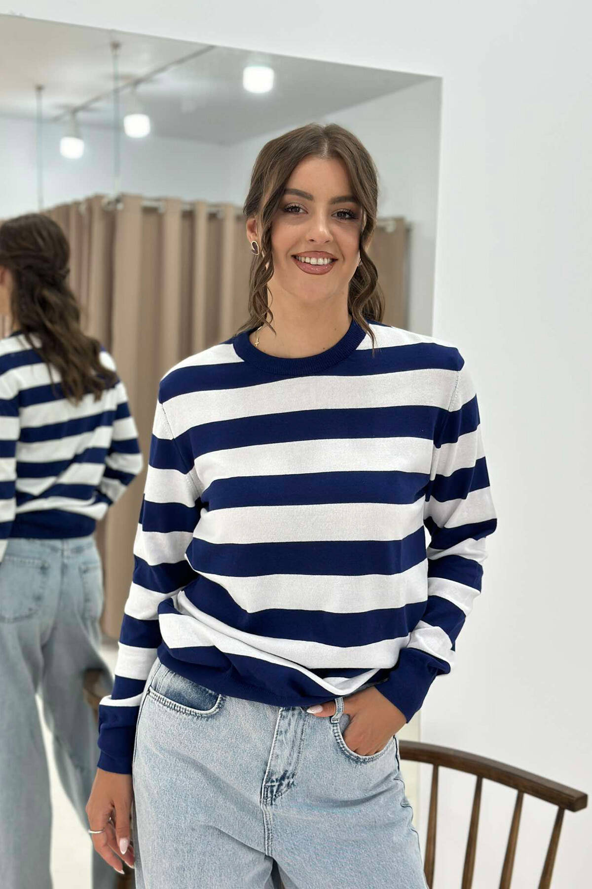 Bejeni tuajen bluzen me vija horizontale , me jake  te rrumbullaket , vjen ne nje material fantastik , shume komode dhe perfekte per kombinimet tuaja te perditshme ne shkolle apo pune .