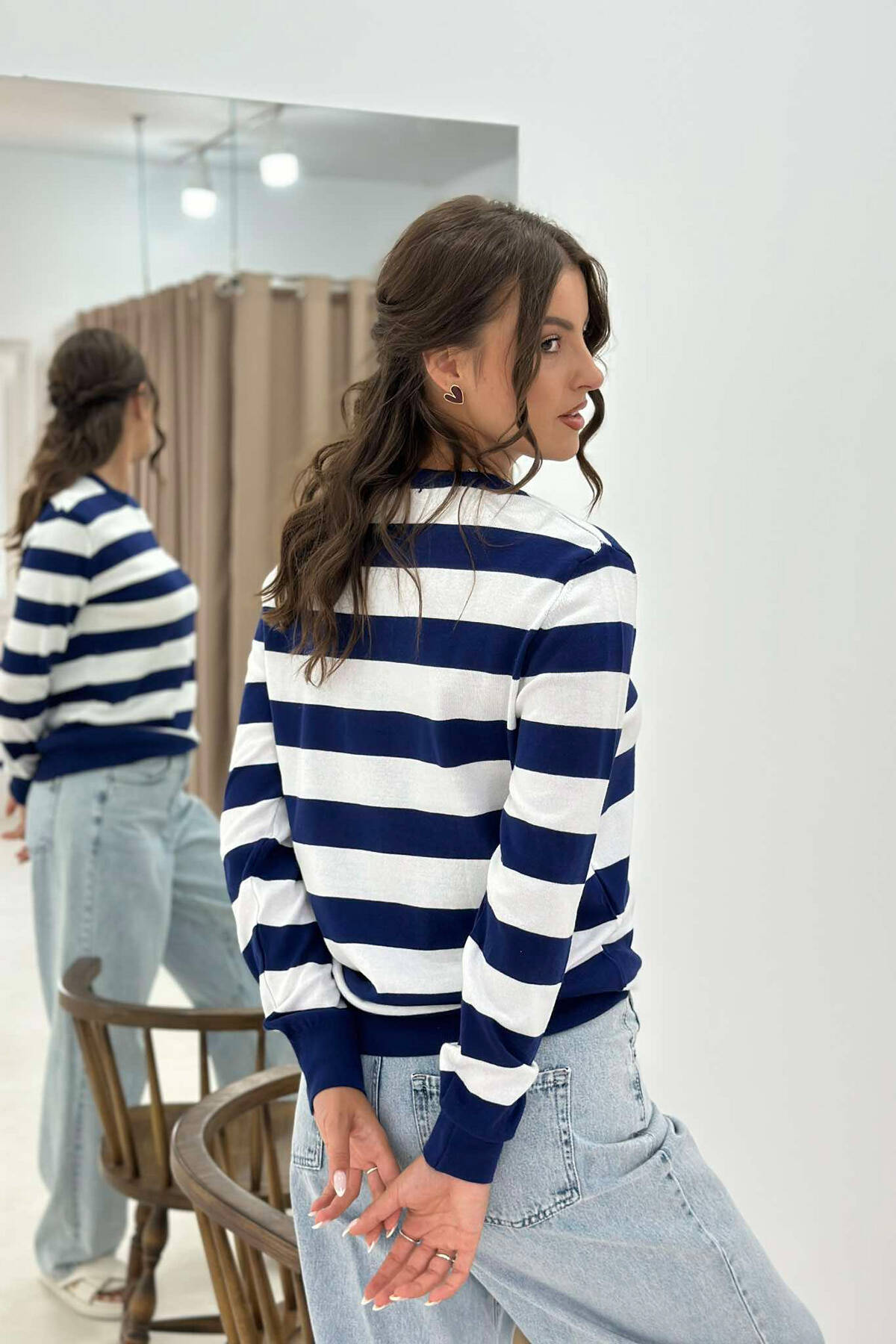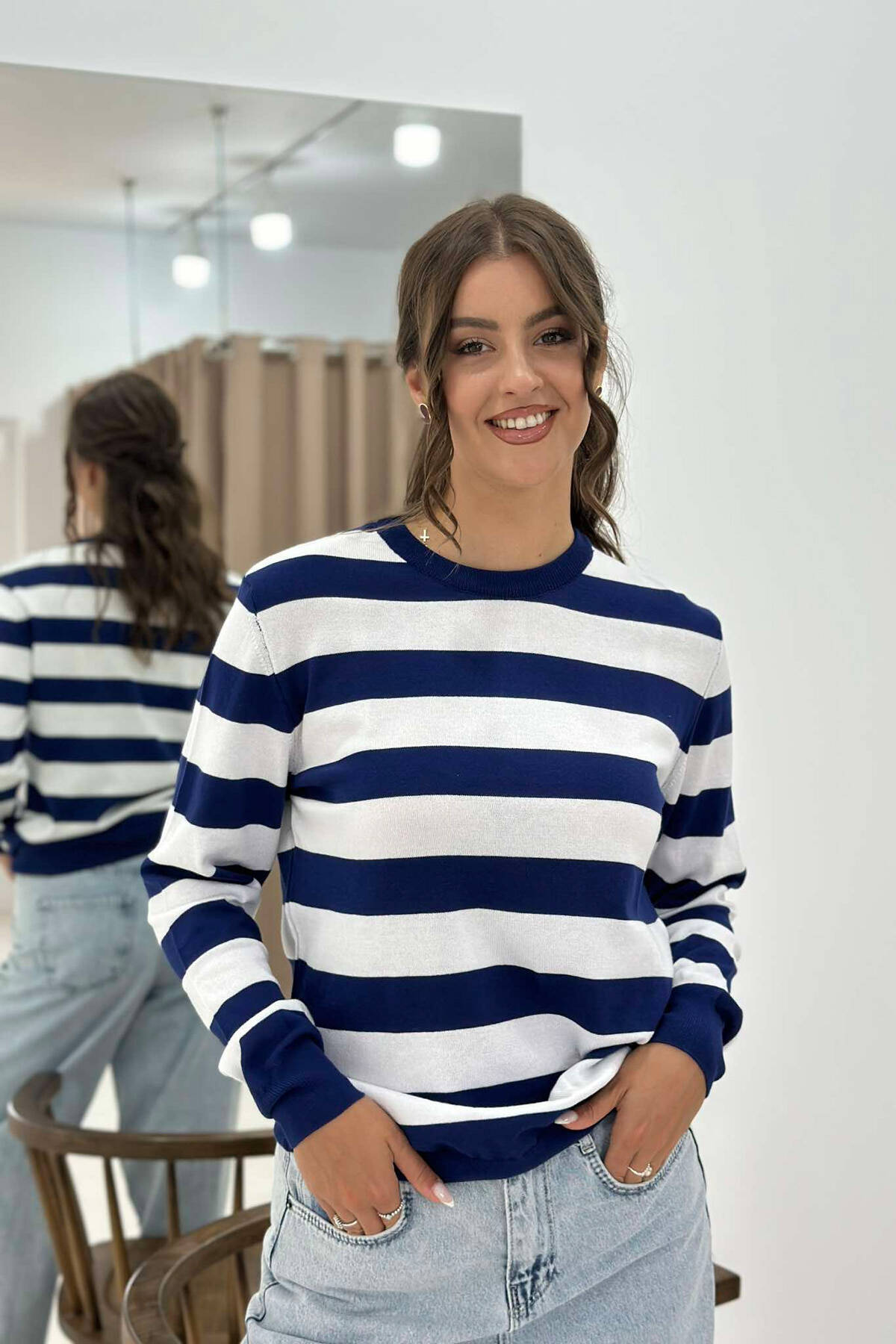 BLUZË ME VIJA PËR FEMRA NË NGJYRË BLU DHE TË BARDHË