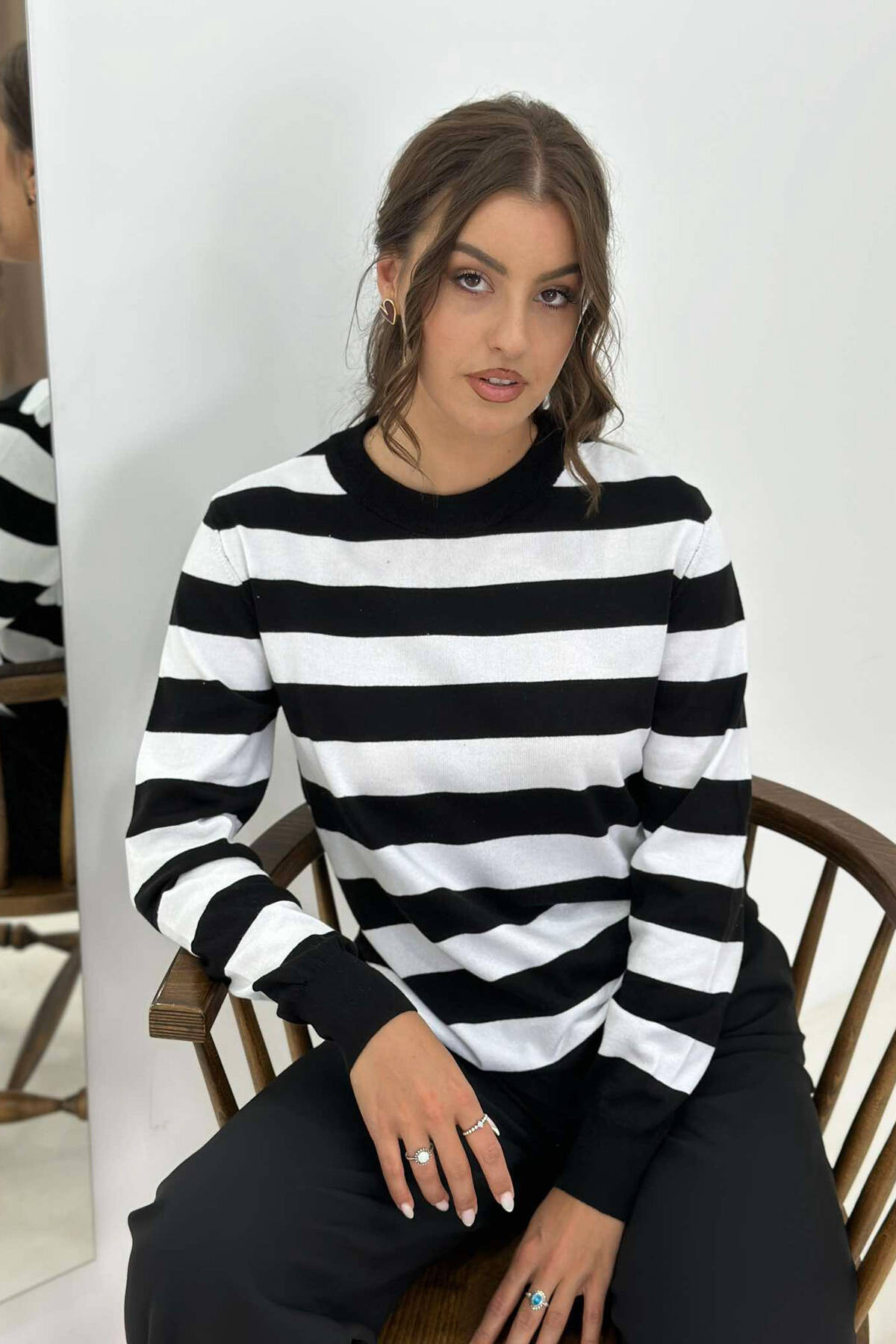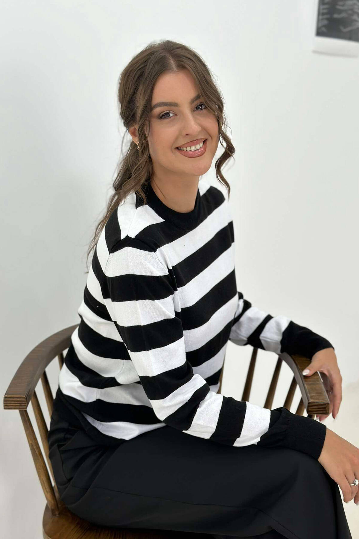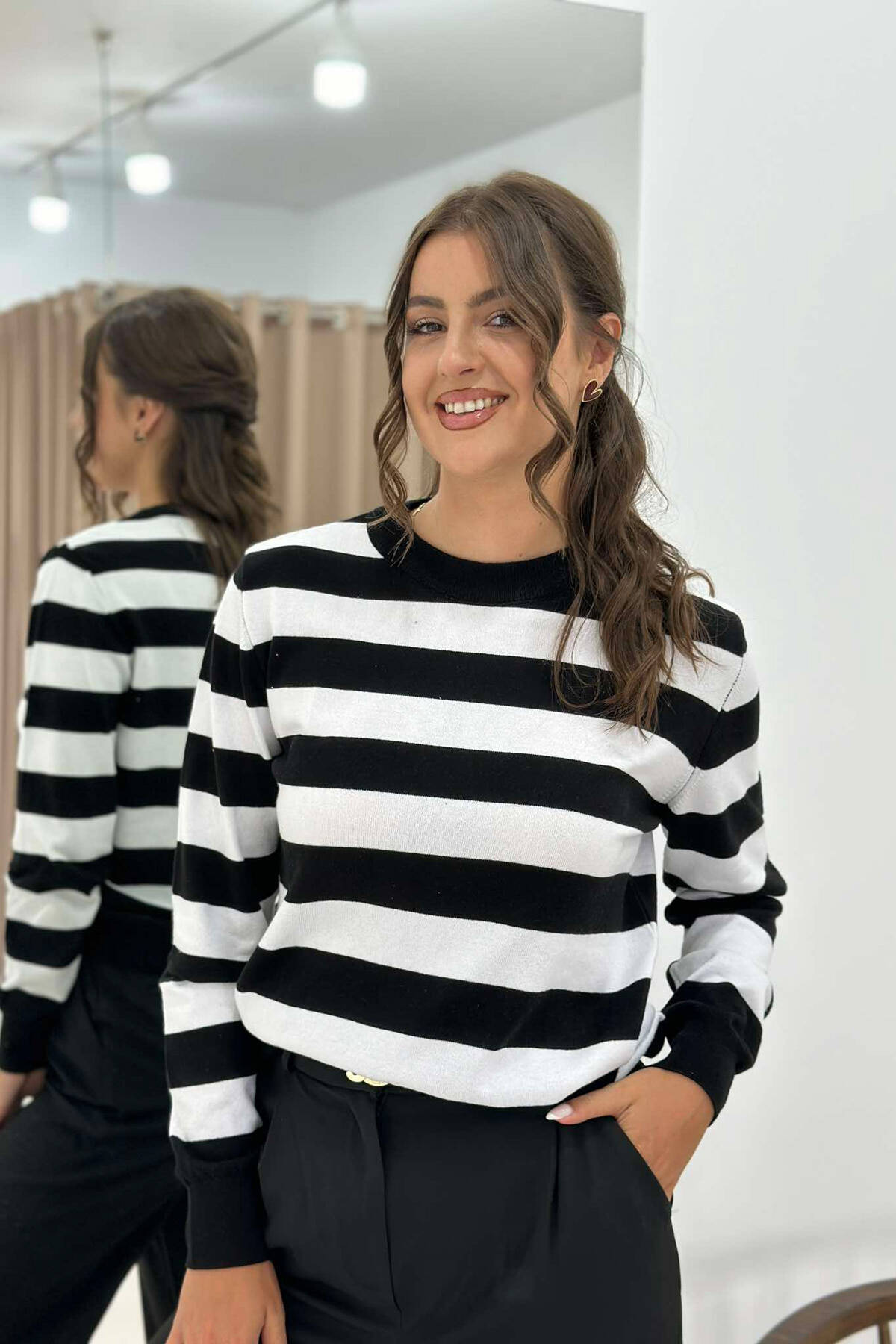 BLUZË ME VIJA PËR FEMRA NË NGJYRË TË ZEZË DHE TË BARDHË