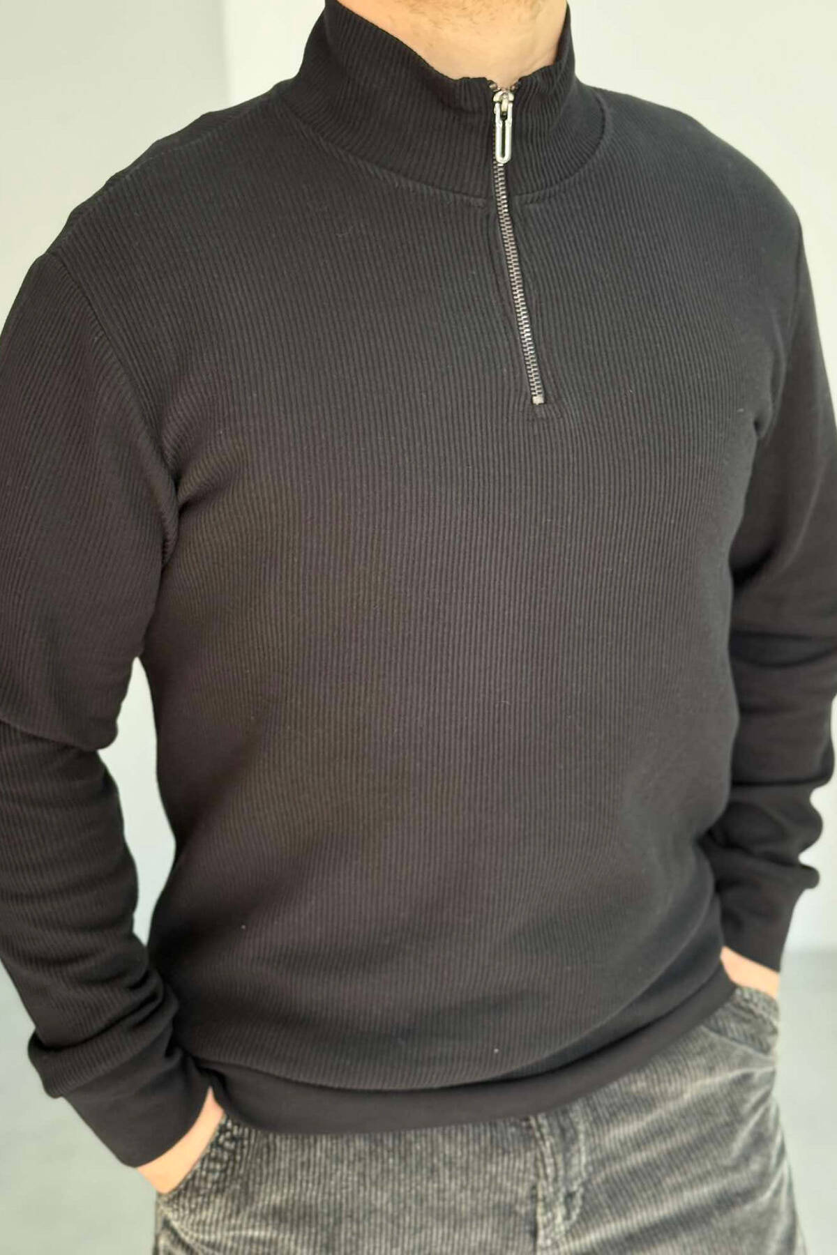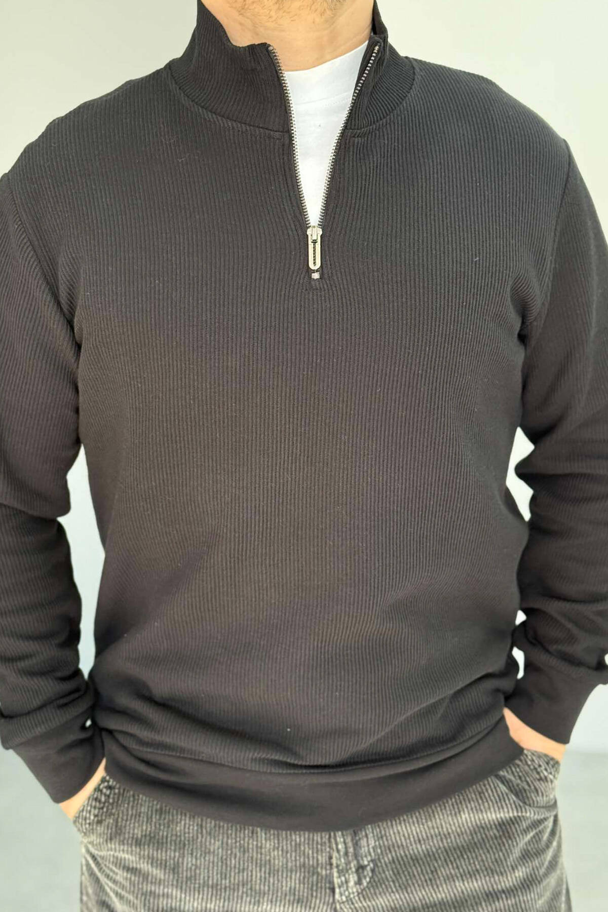 BLUZË NJË NGJYRËSHE ME JAKË ME ZINXHIR PËR MESHKUJ NË NGJYRË VISHNJË