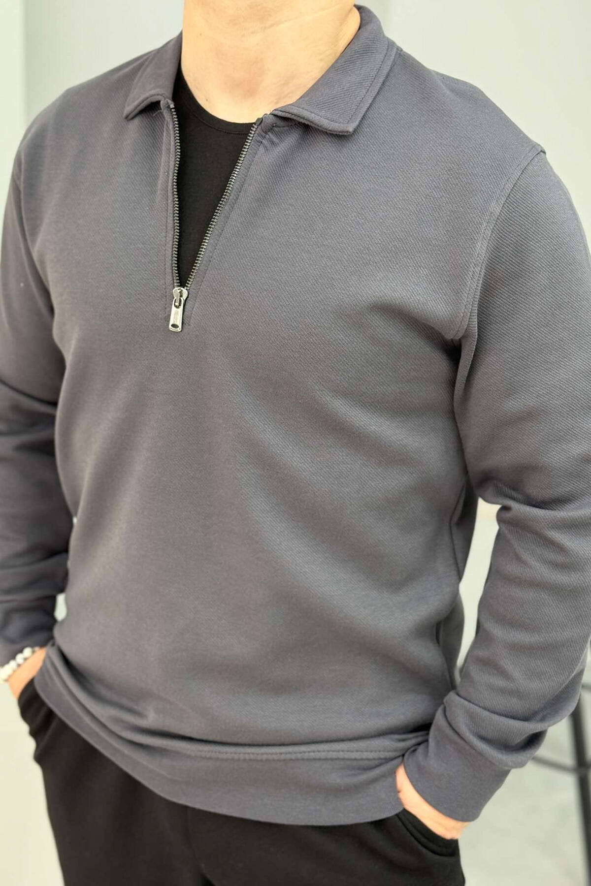 BLUZË NJË NGJYRËSHE ME JAKË ME ZINXHIR PËR MESHKUJ NË NGJYRË BLU