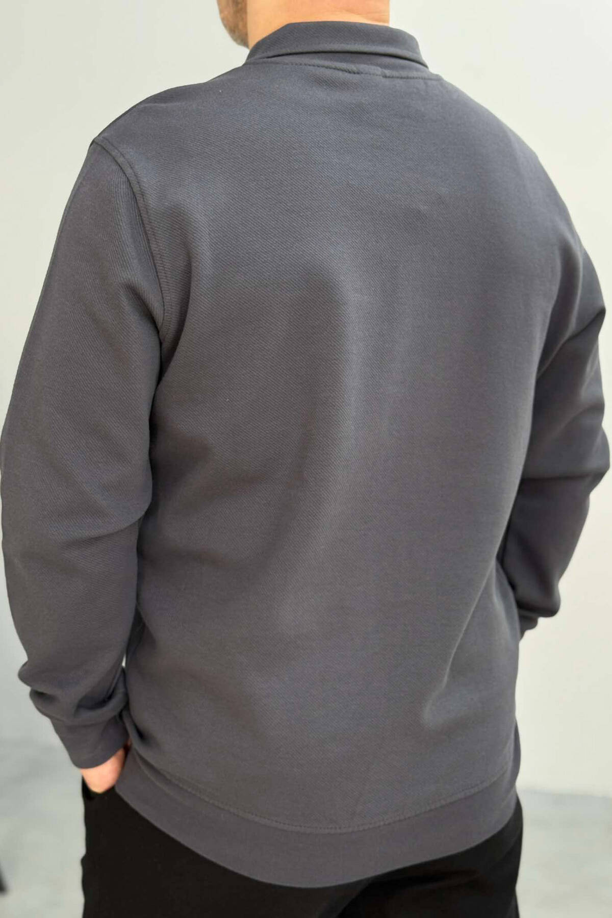 BLUZË NJË NGJYRËSHE ME SHKRIM PARA PËR MESHKUJ NË NGJYRËN GRI TË ERRËT