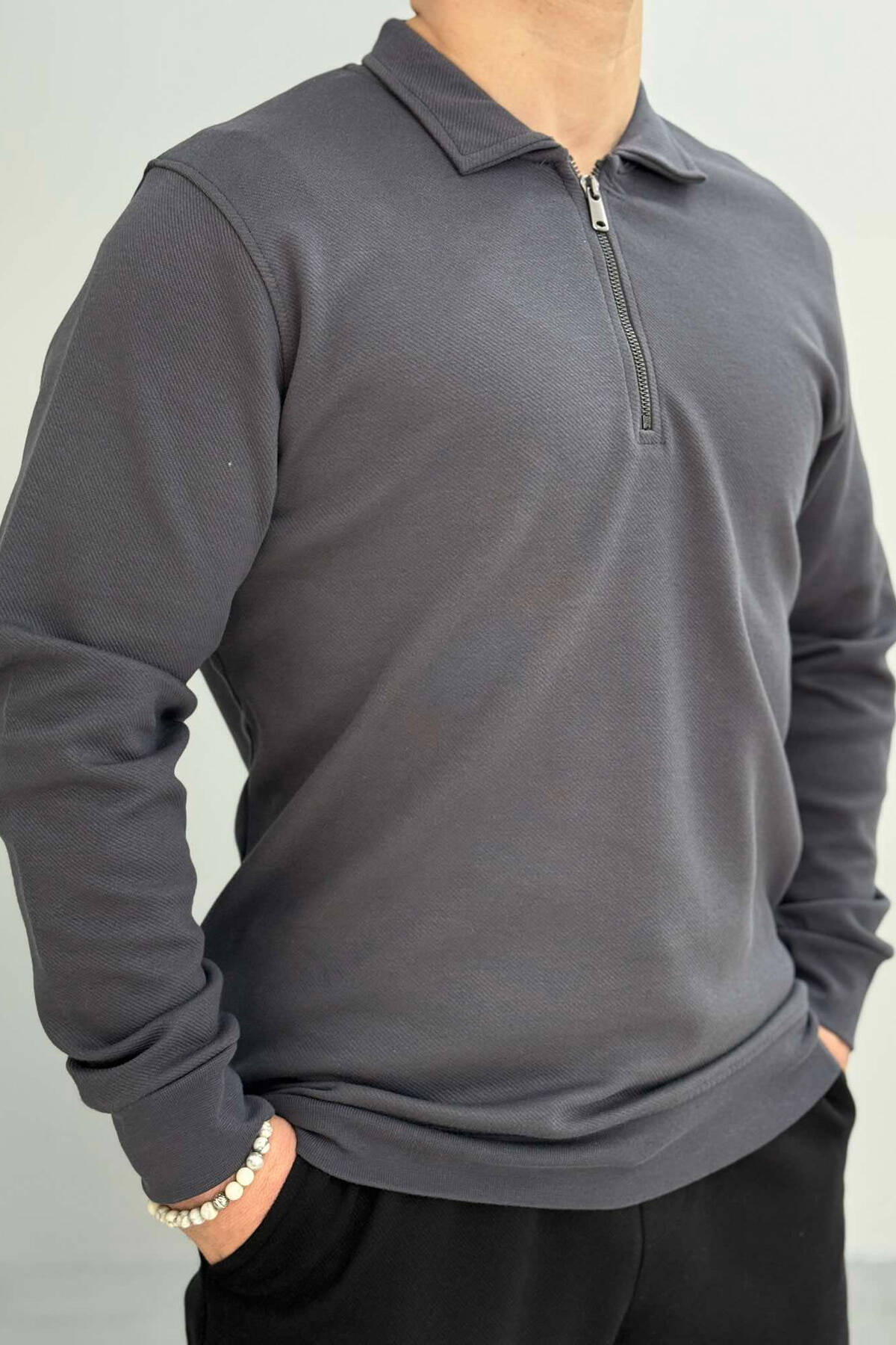 BLUZË NJË NGJYRËSHE ME JAKË ME ZINXHIR PËR MESHKUJ NË NGJYRË VISHNJË