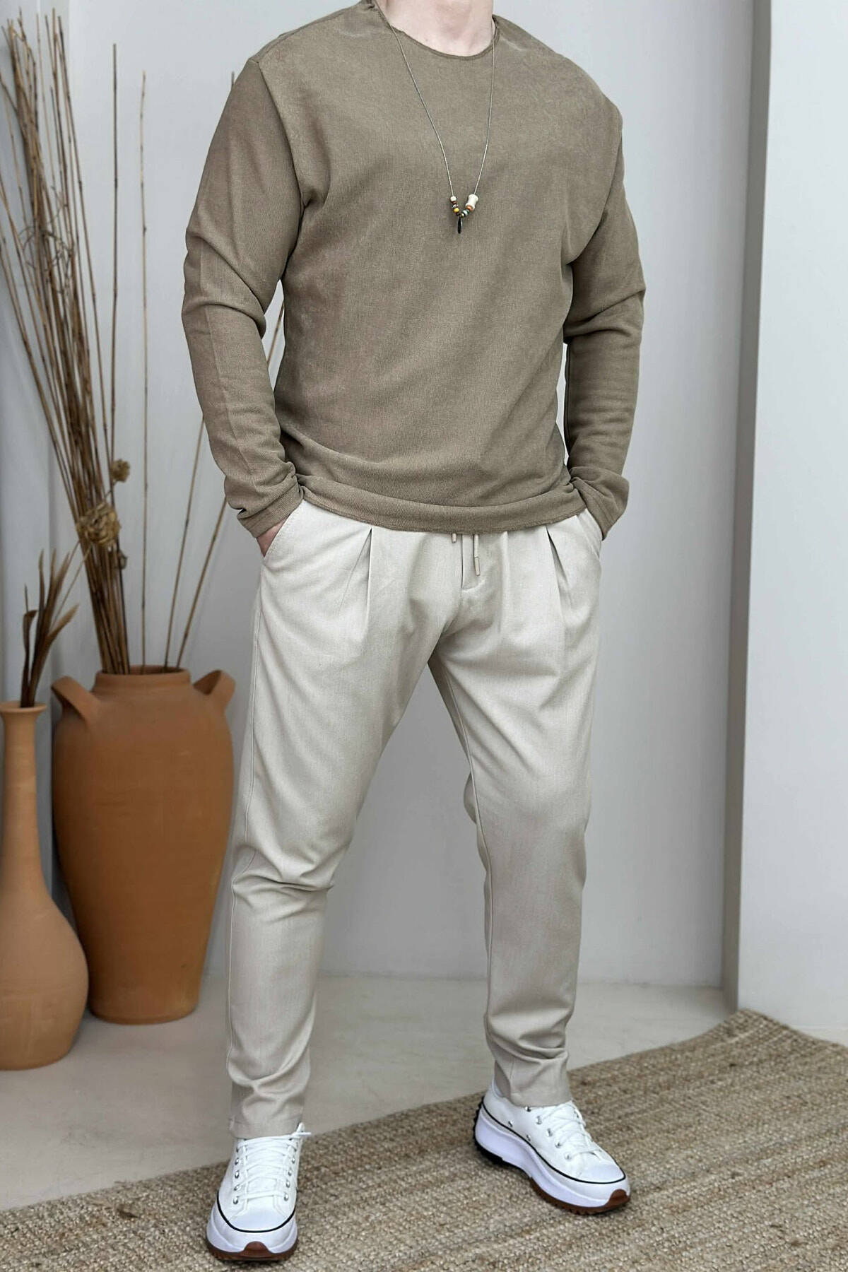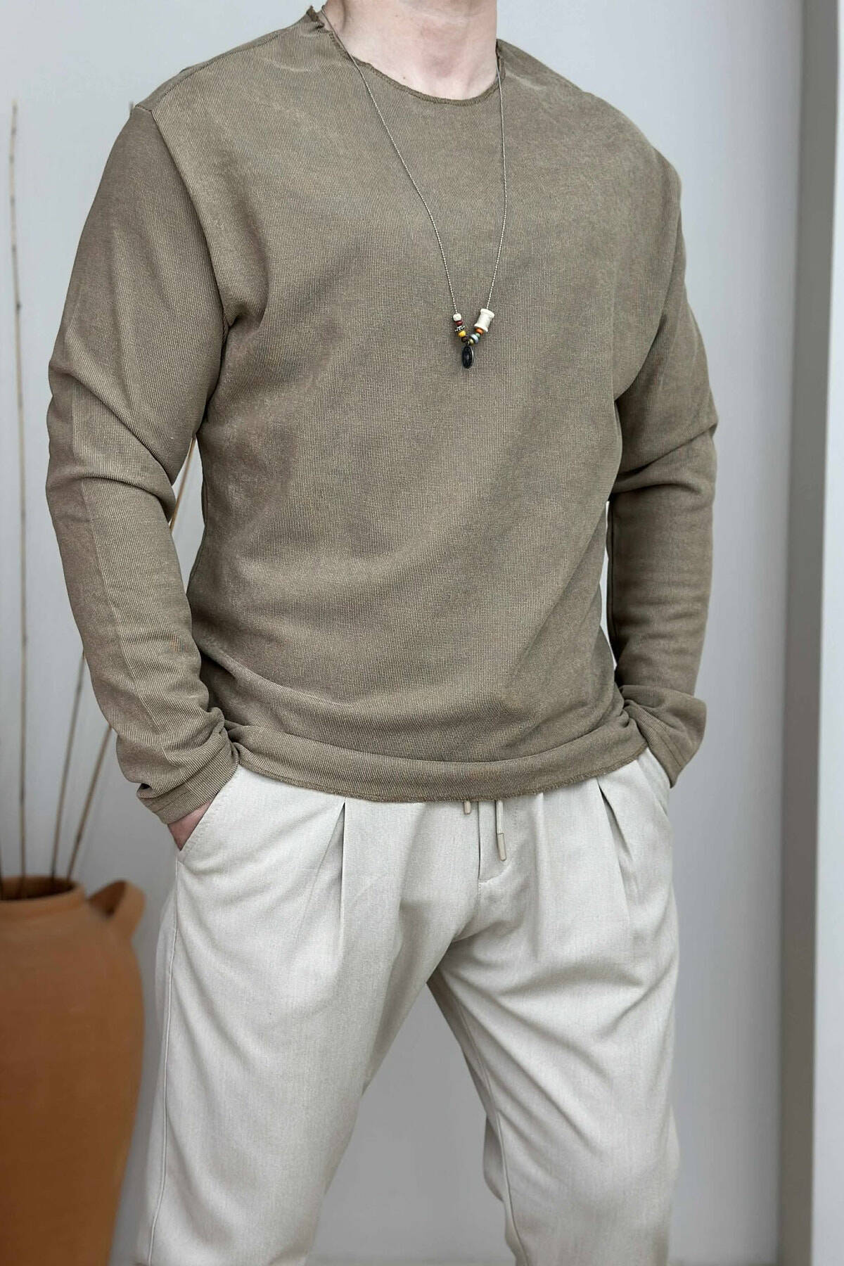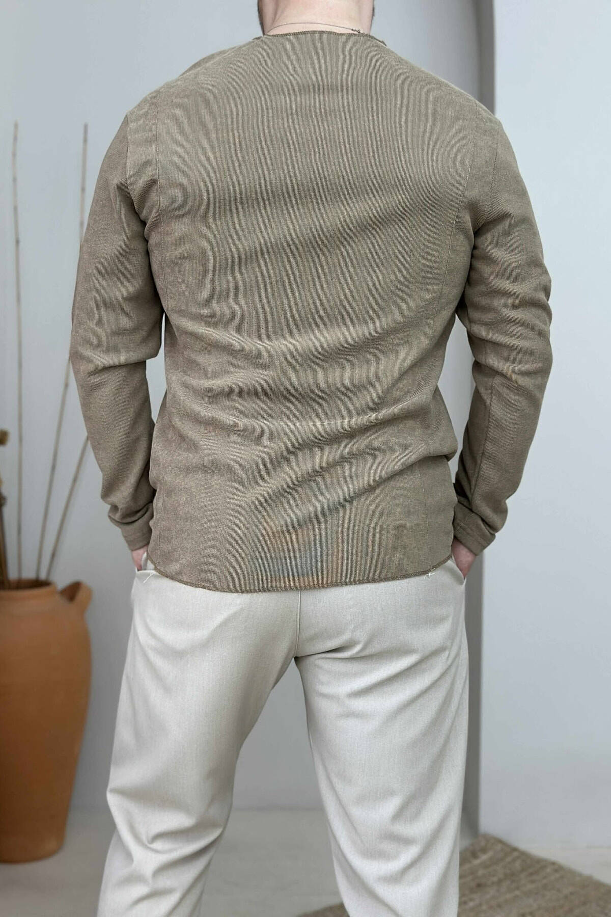 BLUZË NJË NGJYRËSHE E THJESHTË PËR MESHKUJ NË NGJYRËN KAFE