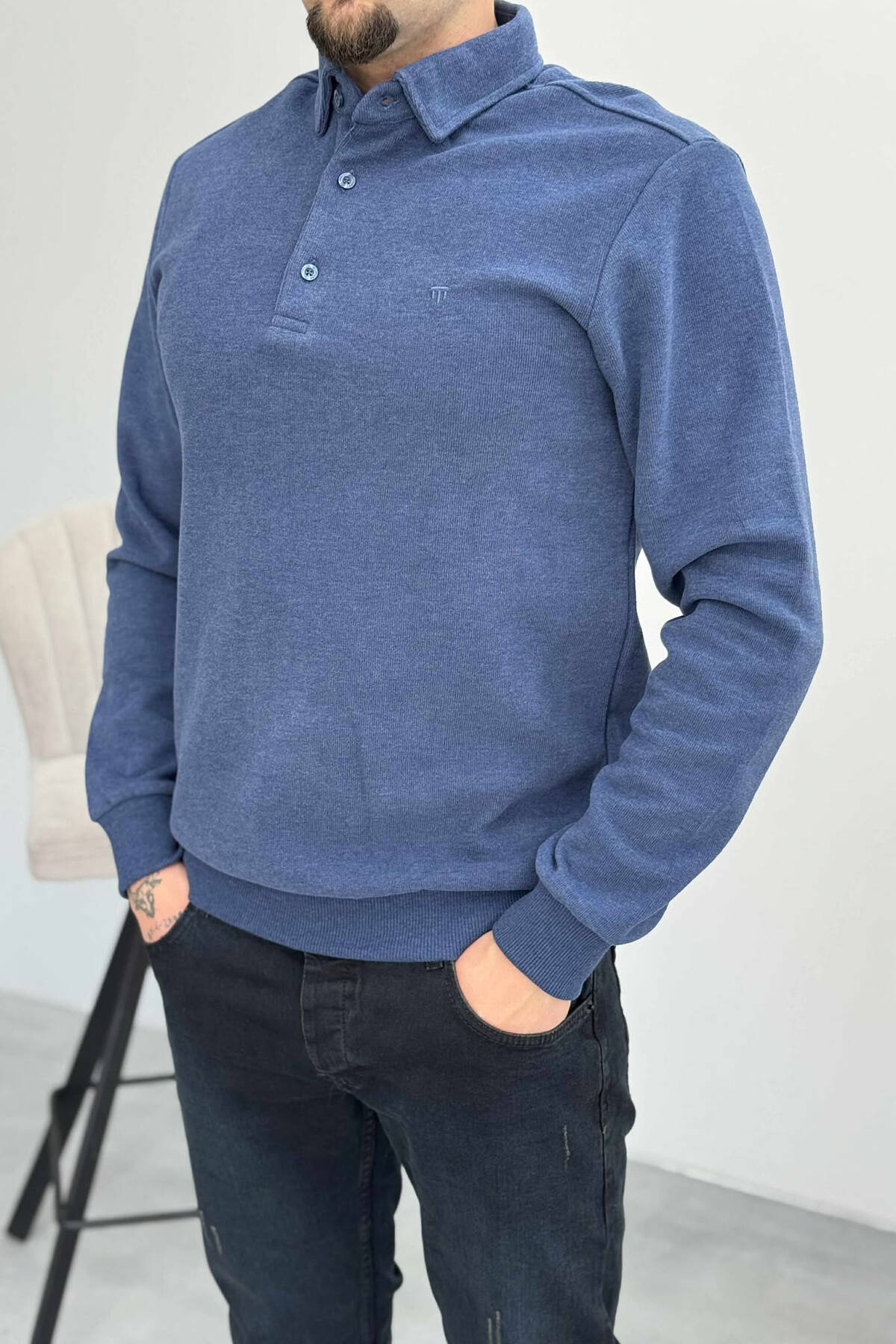 BLUZË E THJESHTË NJË NGJYRËSHE ME JAKE V PËR MESHKUJ NË NGJYRËN BLU TË ERRËT