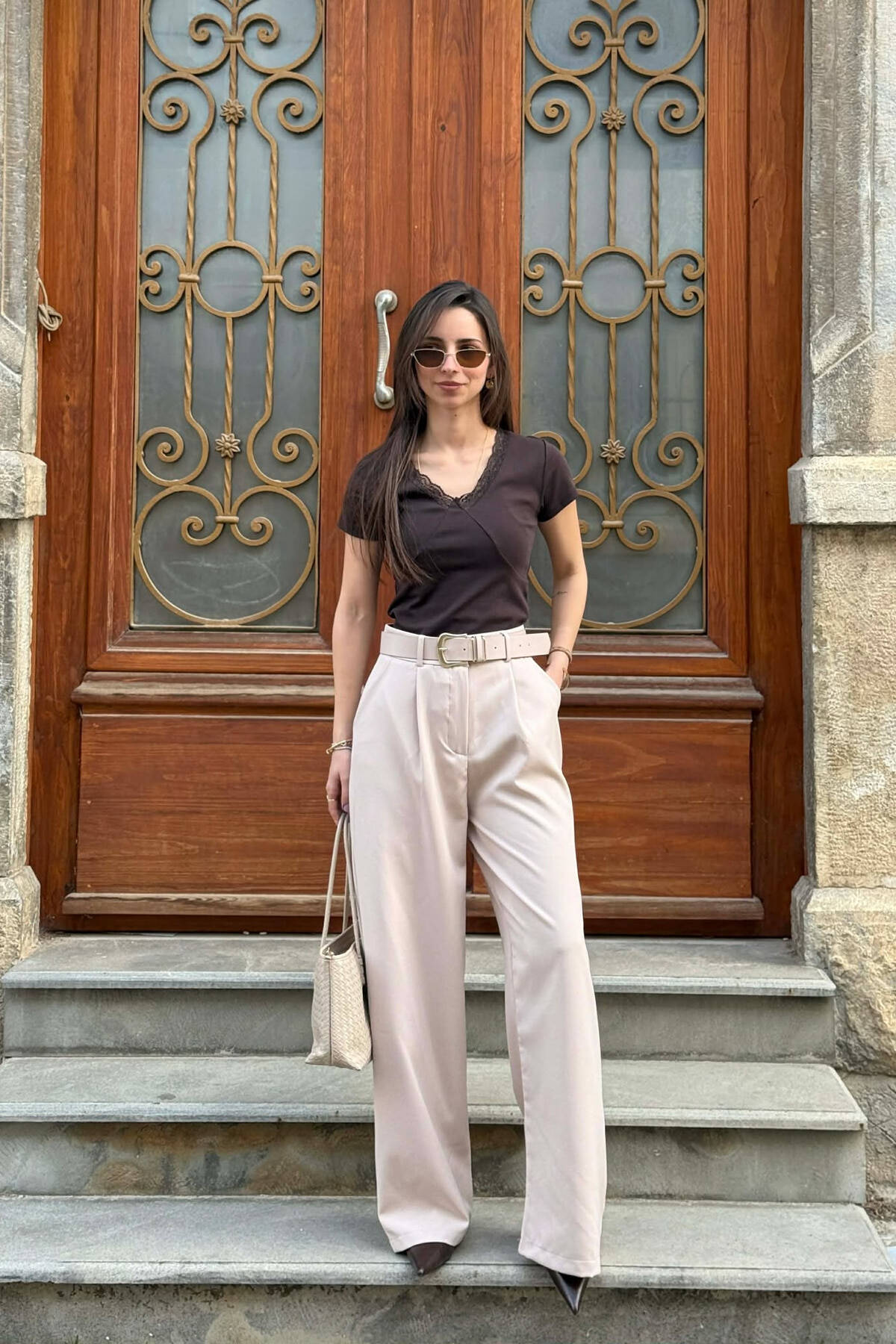BLUZE NJE NGJYRESHE ME JAKE V PER FEMRA NE NGJYRE KAFE