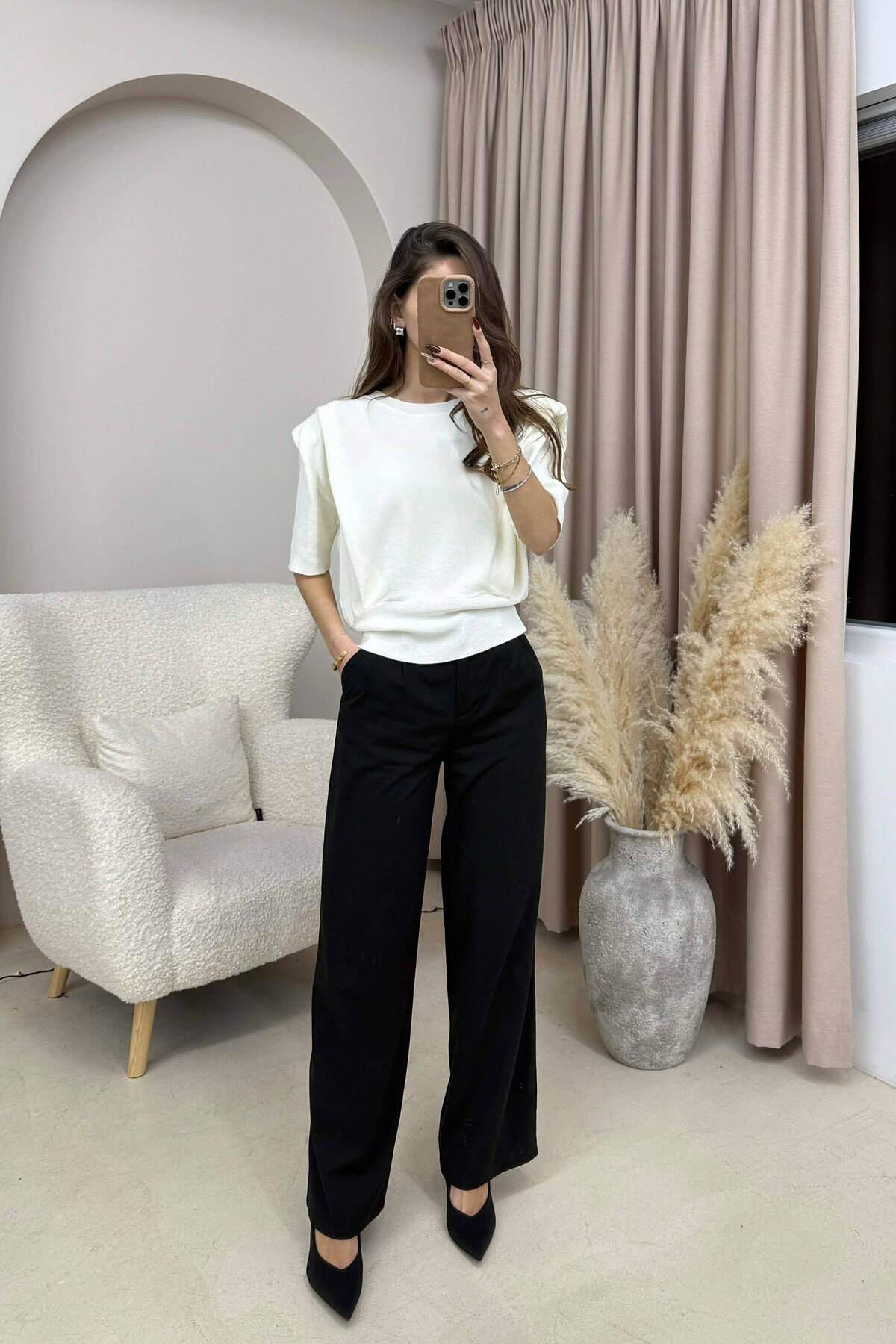 BLUZË ME PUSH DHE JAKË POLO ME BUTONA PËR FEMRA NË NGJYRË TË ZEZË