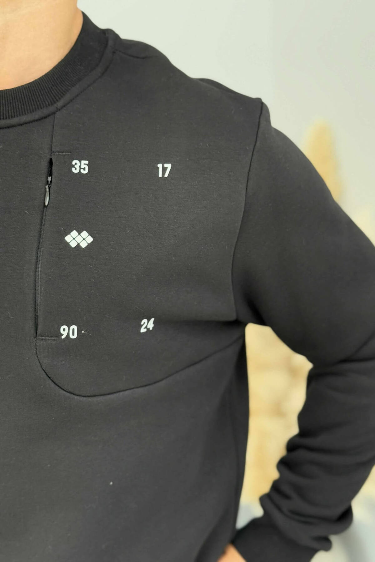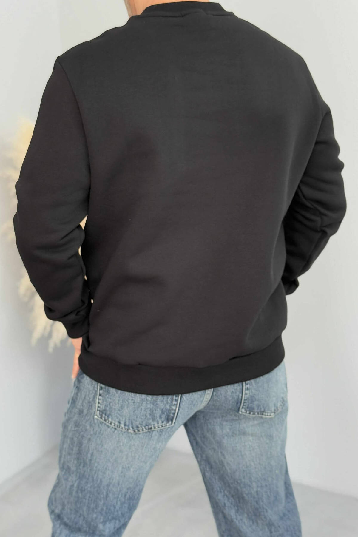 BLUZË NJË NGJYRËSHE ME PUSH DHE JAKË TË RRUMBULLAKËT PËR MESHKUJ NË NGJYRË TË ZEZË