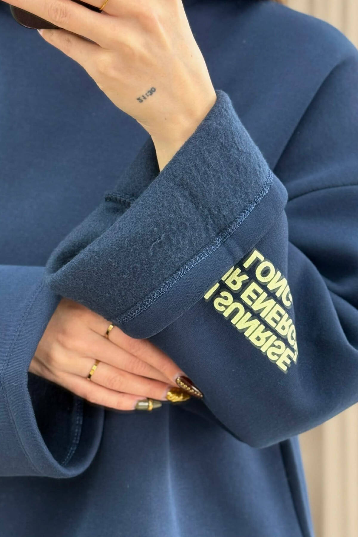 BLUZE NJE NGJYRESHE ME PUSH DHE ME SHKRIME NE PJESEN E PASME PER FEMRA NE NGJYRE BLU TE ERRET