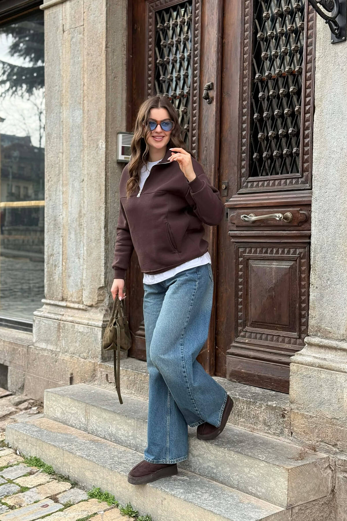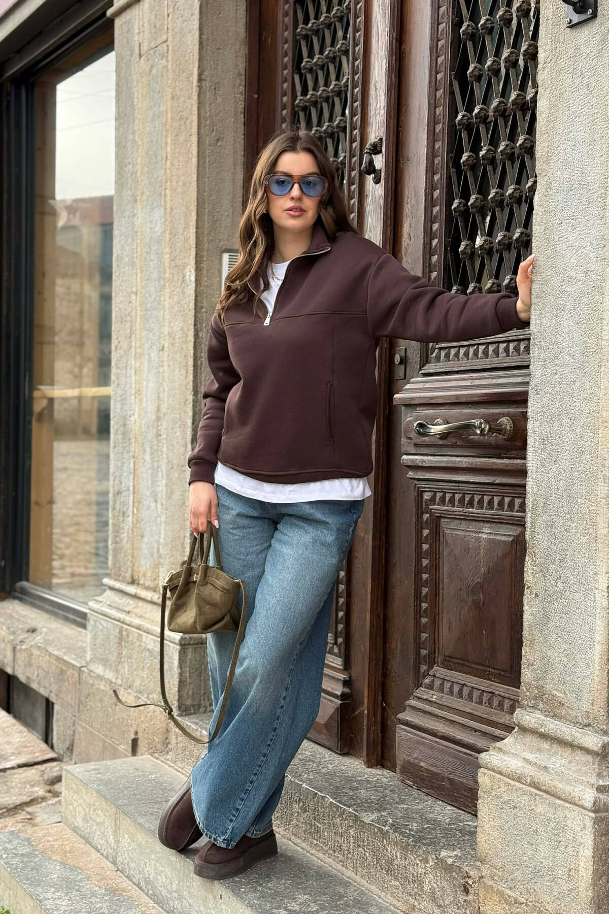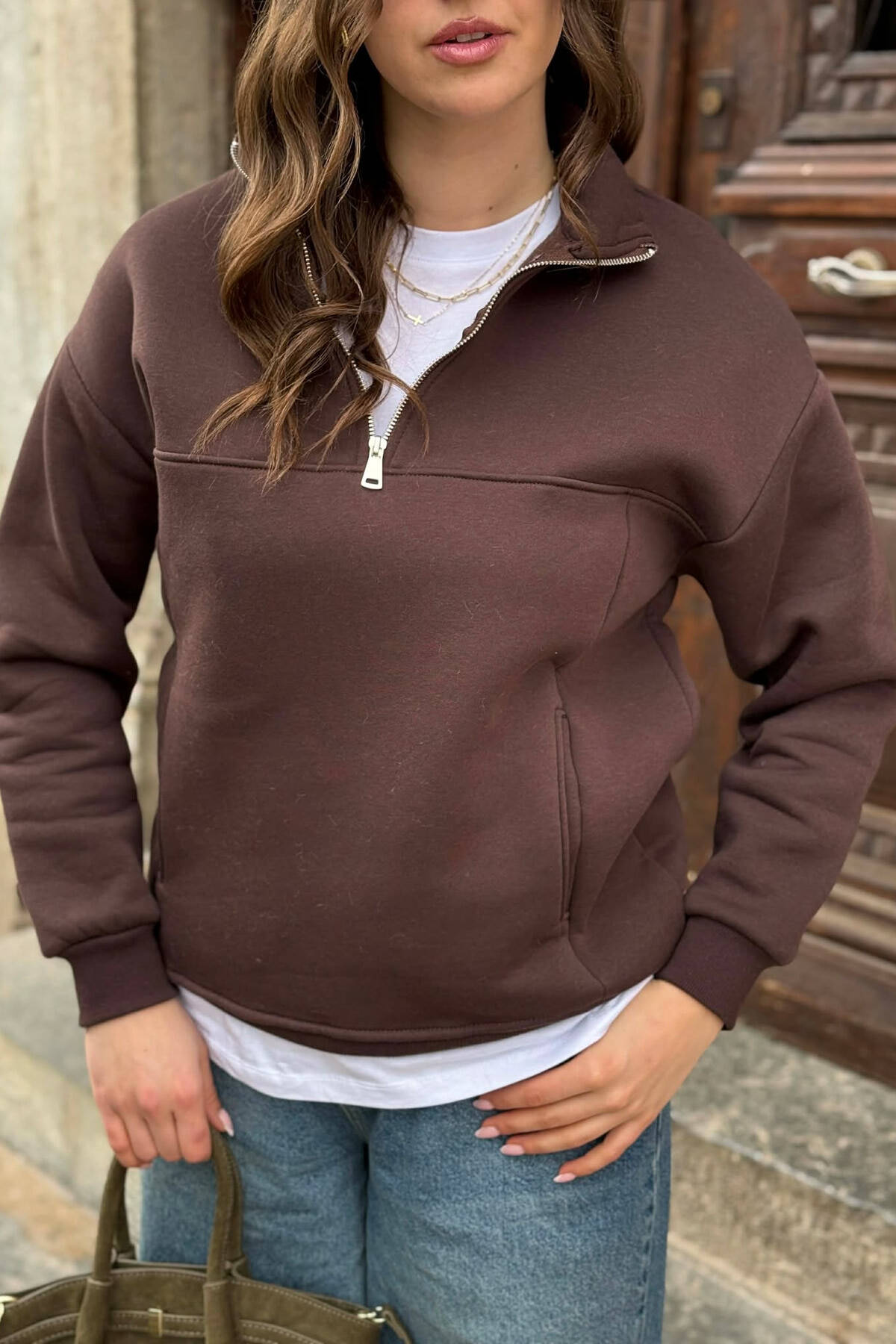 BLUZE NJE NGJYRESHE ME PUSH ME JAKE ME ZINXHIR PER FEMRA NE NGJYRE KAFE
