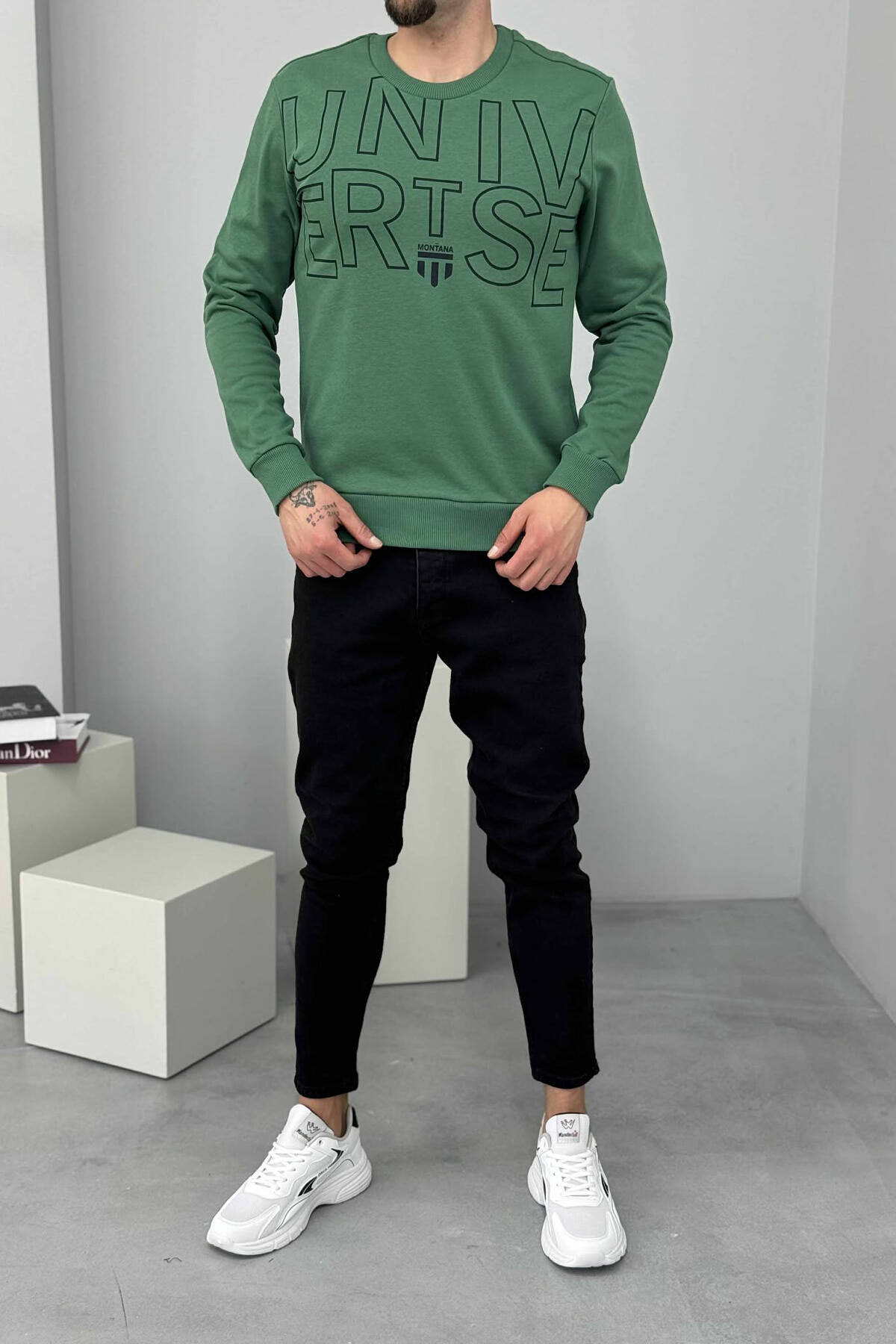 BLUZË NJË NGJYRËSHE ME SHKRIM PARA PËR MESHKUJ NË NGJYRË JESHILE