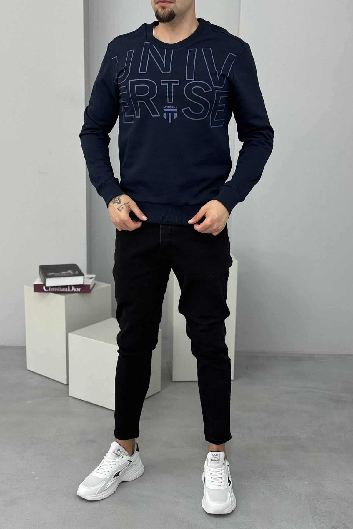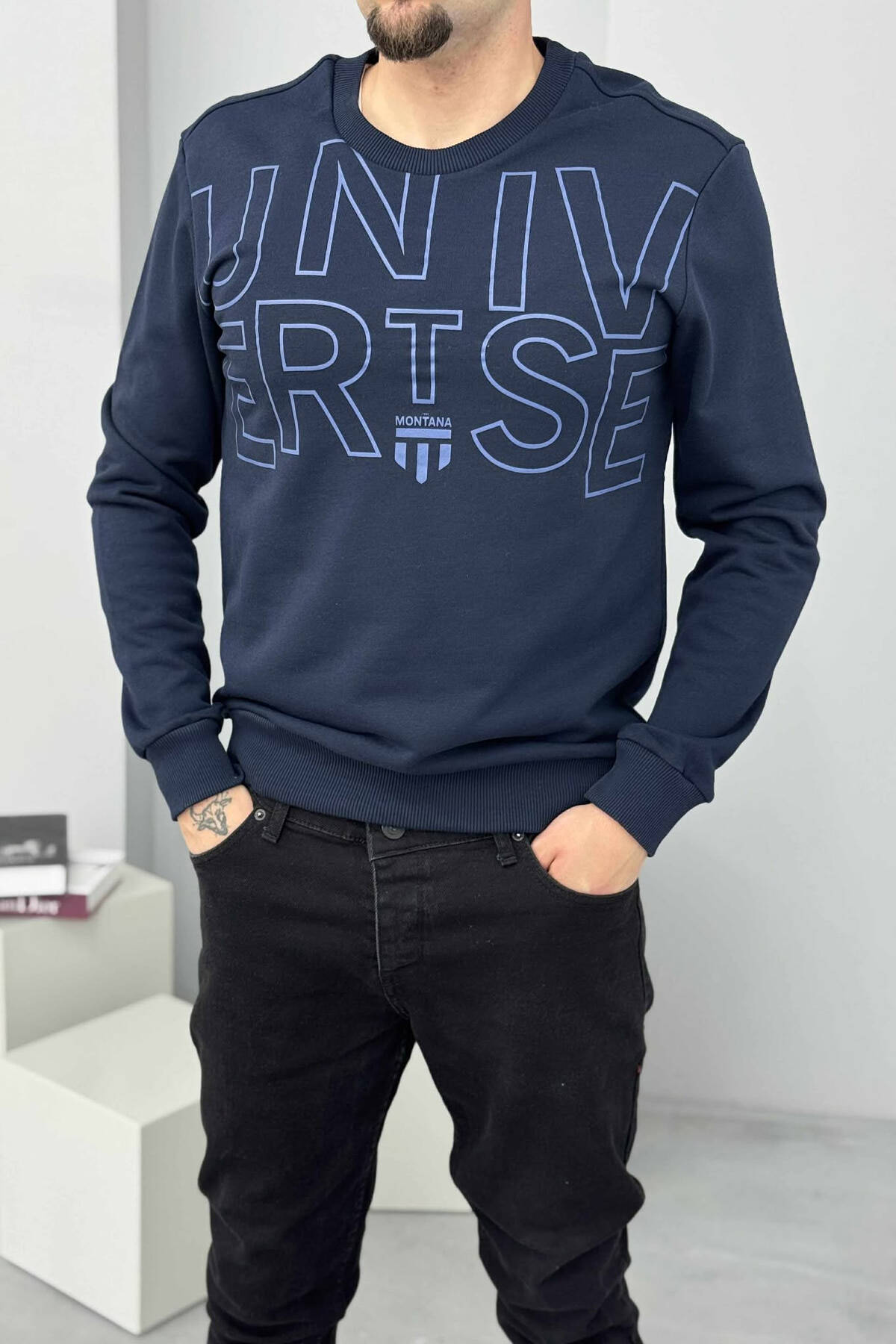 BLUZË NJË NGJYRËSHE ME SHKRIM PARA PËR MESHKUJ NË NGJYRËN BLU TË ERRËT