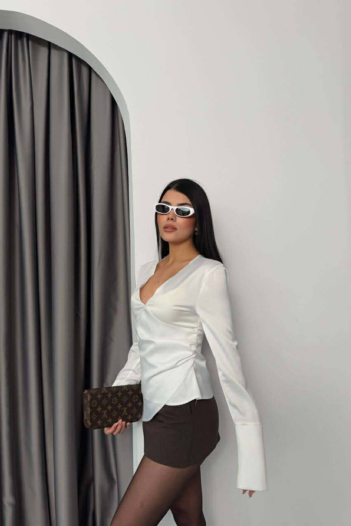 BLUZE NJE NGJYRESHE SATENI PER FEMRA NE NGJYRE TE BARDHE