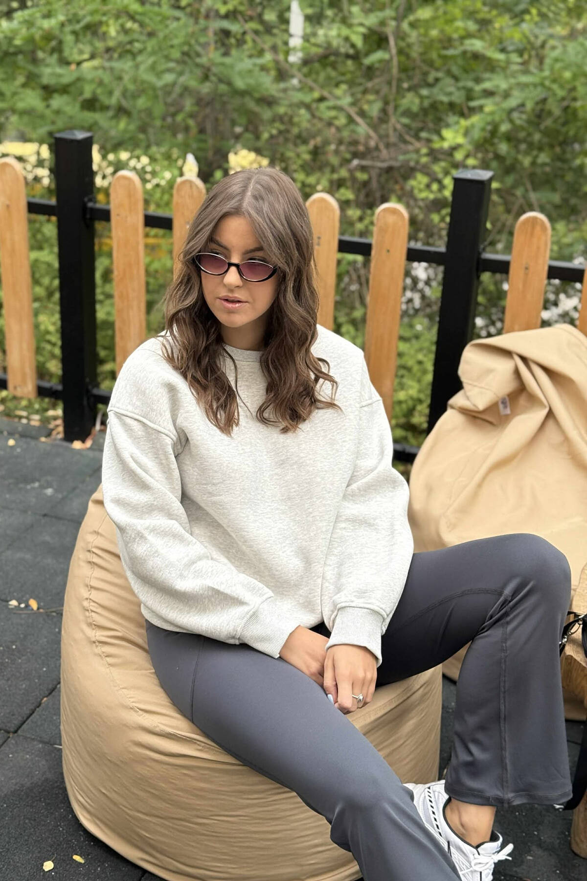 ROUND NECK SIMPLE WOMEN SWEATSHIRT CREAM/KREM