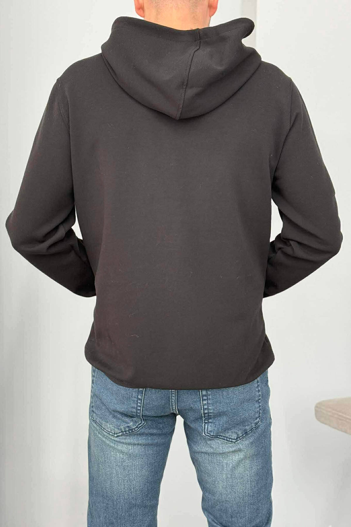 HOODIE NJË NGJYRËSHE ME LOGO NË PJESËN PARA PËR MESHKUJ NË NGJYRËN E ZEZË